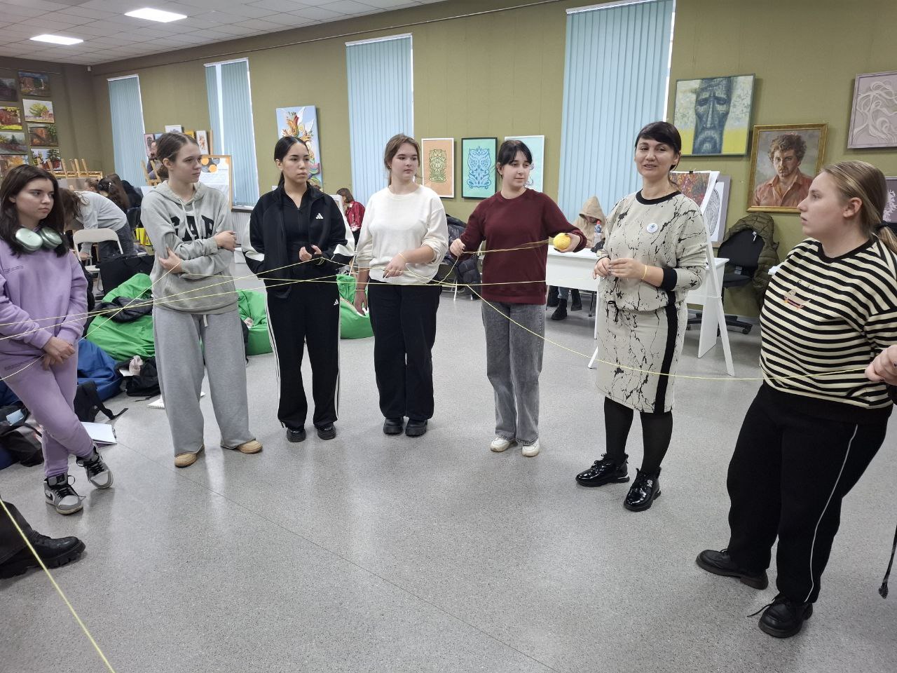 The art therapy began with emotional attunement through a symbolic, interactive exercise titled “My Superpower. Participants, united in a common circle, passed a ball of thread, creating a living network – a visual image of support and social cohesion. Each participant, tying a thread to their wrist, verbalised their inner pillar: endurance, empathy, and the ability to inspire. This psychological technique allowed for the activation of a sense of belonging to a community and the creation of an “amulet of strength,” which remained with each person as a reminder of their own invincibility. “Each of us has our own superpower. And together we create a network of talented, strong people capable of supporting one another”, – Maryna Teslenko addressed those present.