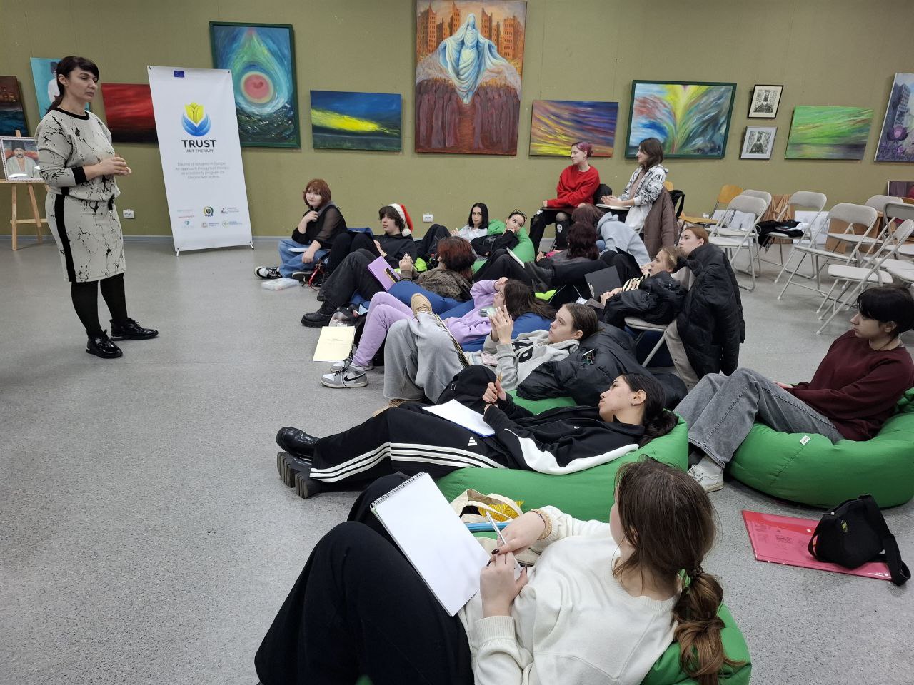 The workshop was based on the concept of symbolic processing of the internal state of “wintering” – a period when external conditions become harsher, requiring a person to have a special concentration of internal strength. The event aimed to mobilise resilience resources, which are critically important for students, youth, and internally displaced persons who continue to adapt to wartime realities.