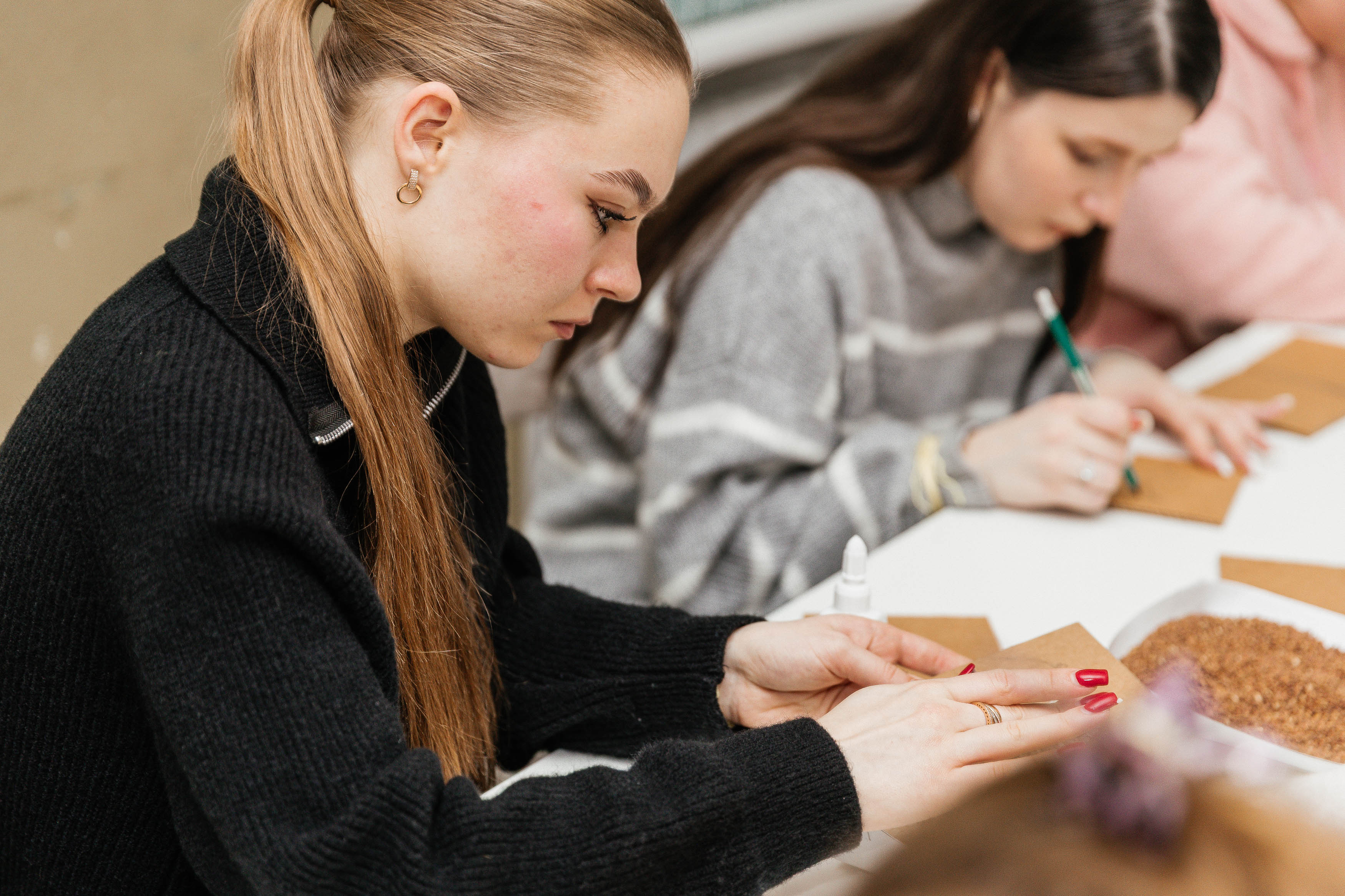 The event was built on a powerful interdisciplinary collaboration among three experts: Olena Ostrohliad, Senior Lecturer in the Department of Fine Arts; Maryna Teslenko, Associate Professor in the Department of Psychology and Pedagogy; and Olena Kryvenko, the University’s practising psychologist. This professional synergy enabled the integration of deep artistic expression with expert psychological support, creating a space of complete emotional safety and trust for the participants. The unique combination of creative techniques and psychological facilitation helped those present find internal resources to transform anxiety into resilience, using creativity as a reliable bridge toward restoring their “Self”.