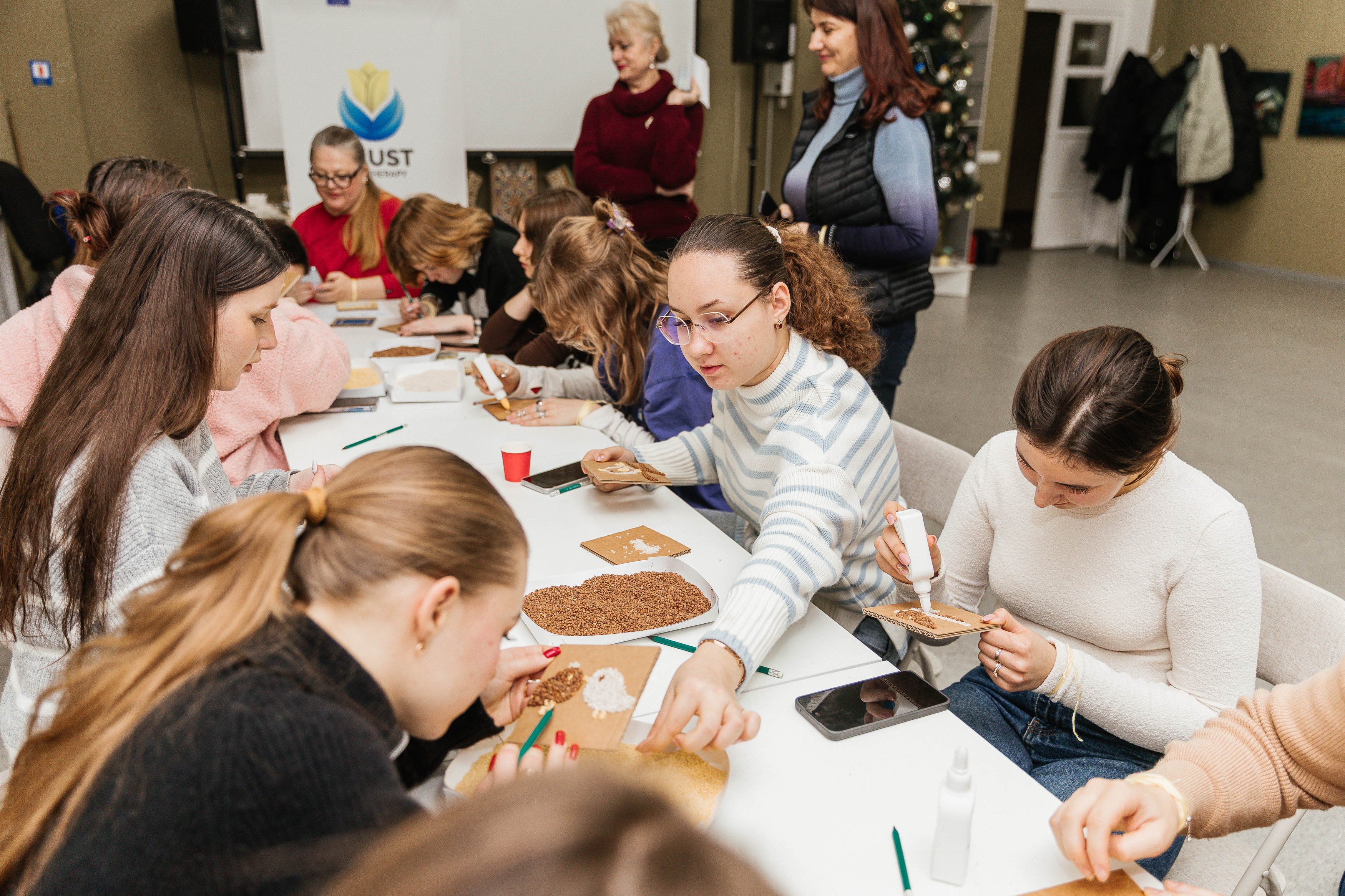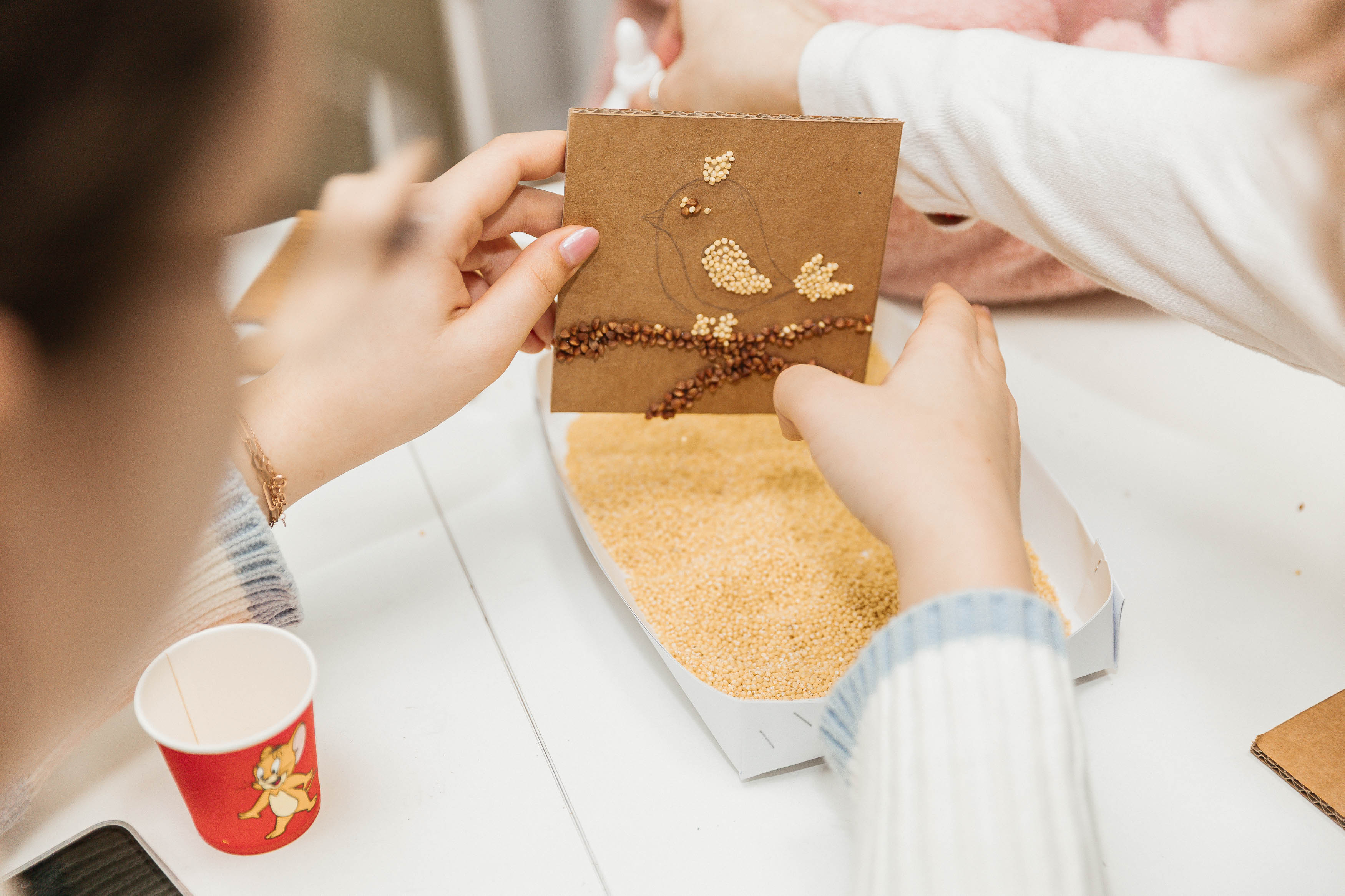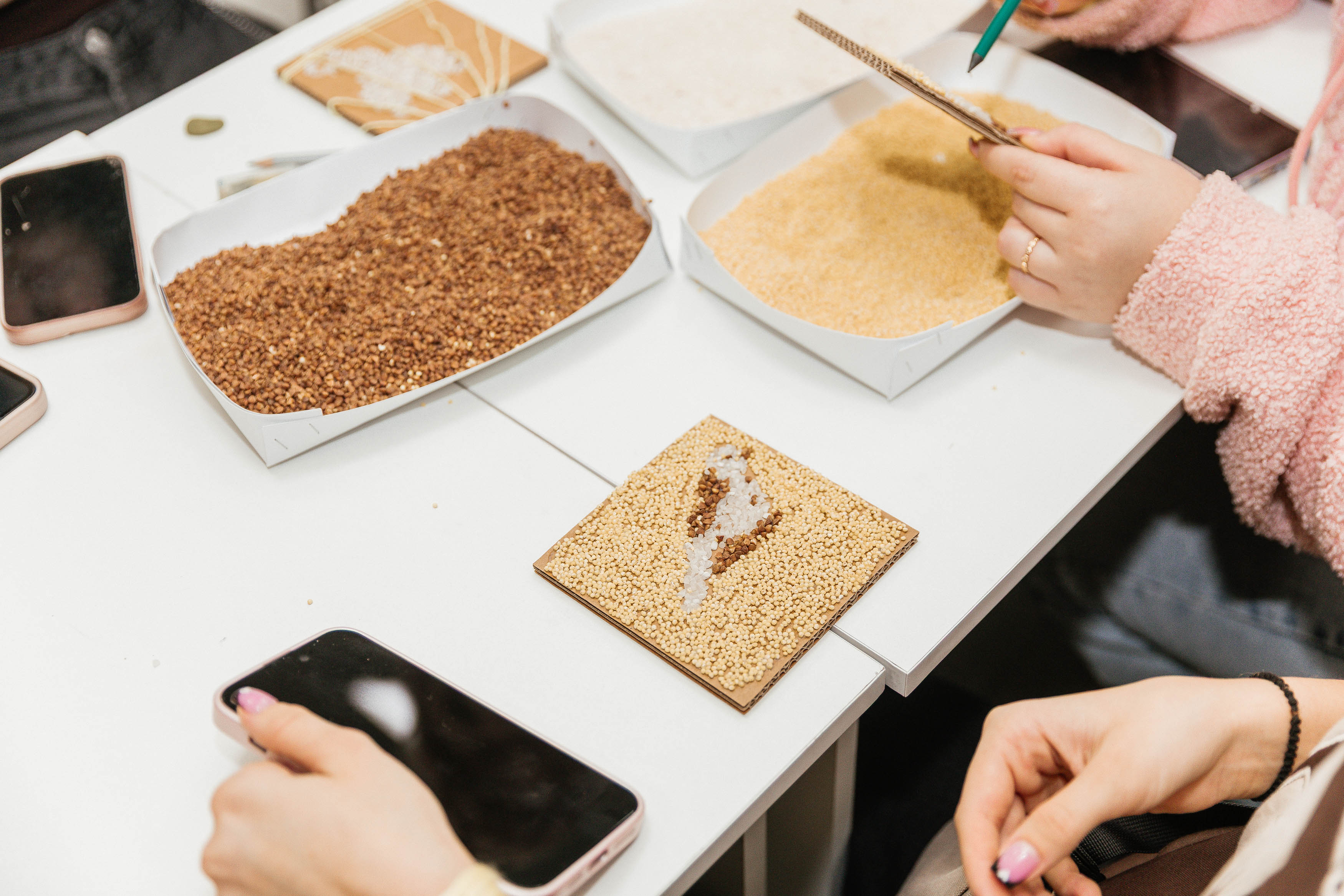 The process of decorating these forms with millet, rice, and buckwheat grains became a truly meditative practice. The psychological effect of this method is based on sensory integration. Through the tactile experience of natural materials and the rhythmic application of grains to the cardboard base, participants reached a state of deep concentration. Each grain on the bird’s wings represented a fragment of life experience, transformed from an emotional burden into a valuable resource. In the creative silence of the Centre for Contemporary Art, an act of inner healing occurred in which the past was not merely left behind but reimagined as the foundation for a future flight.