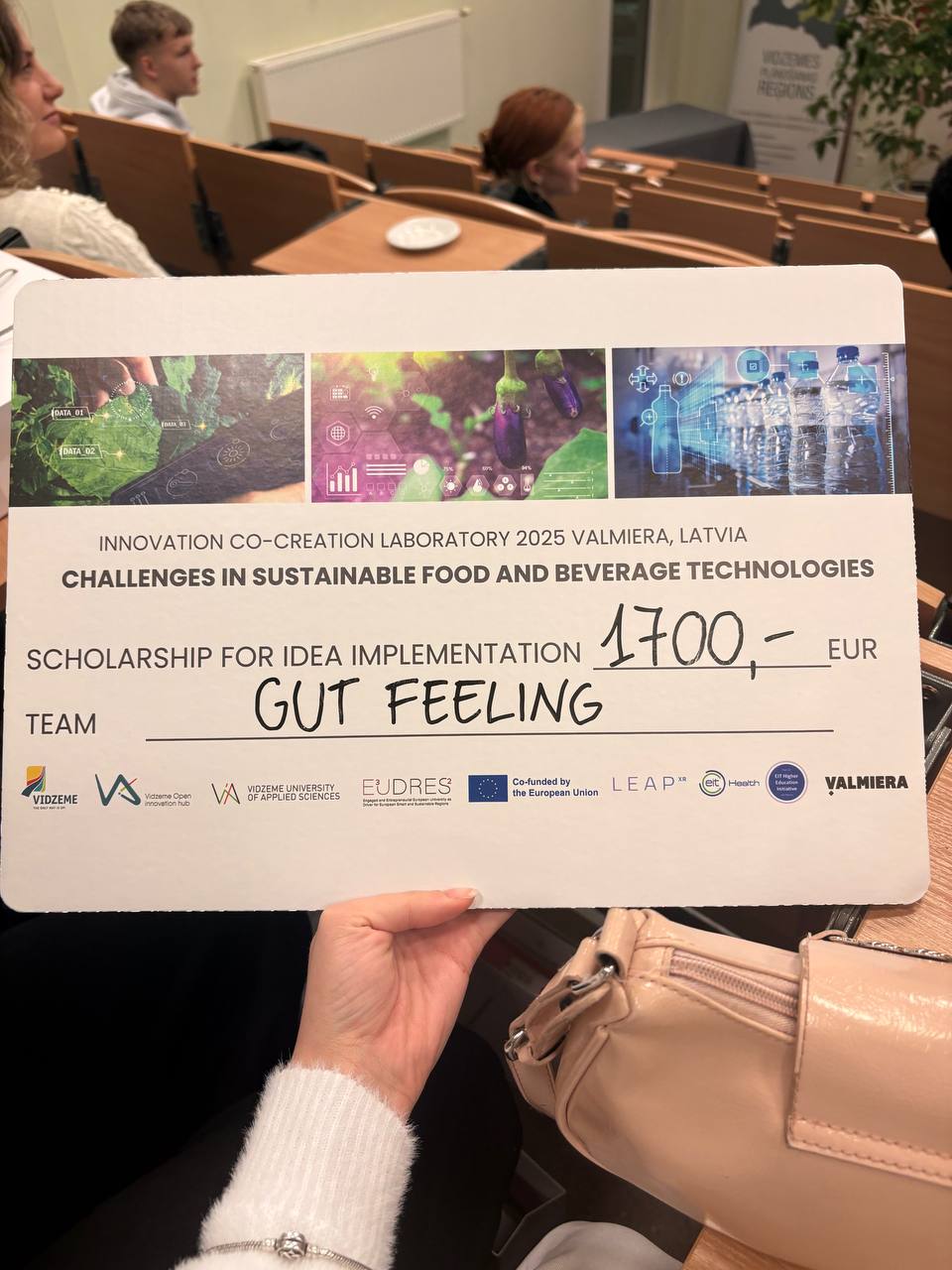 Based on the results of the final pitching, the “Gut Feeling” team won the honorary 2nd place among 10 participating teams. As a reward for the promising idea, the team received a scholarship of 1700 euros for further research and project development. In addition, the event partners, including Swedbank, honoured the prize-winners with memorable gifts.