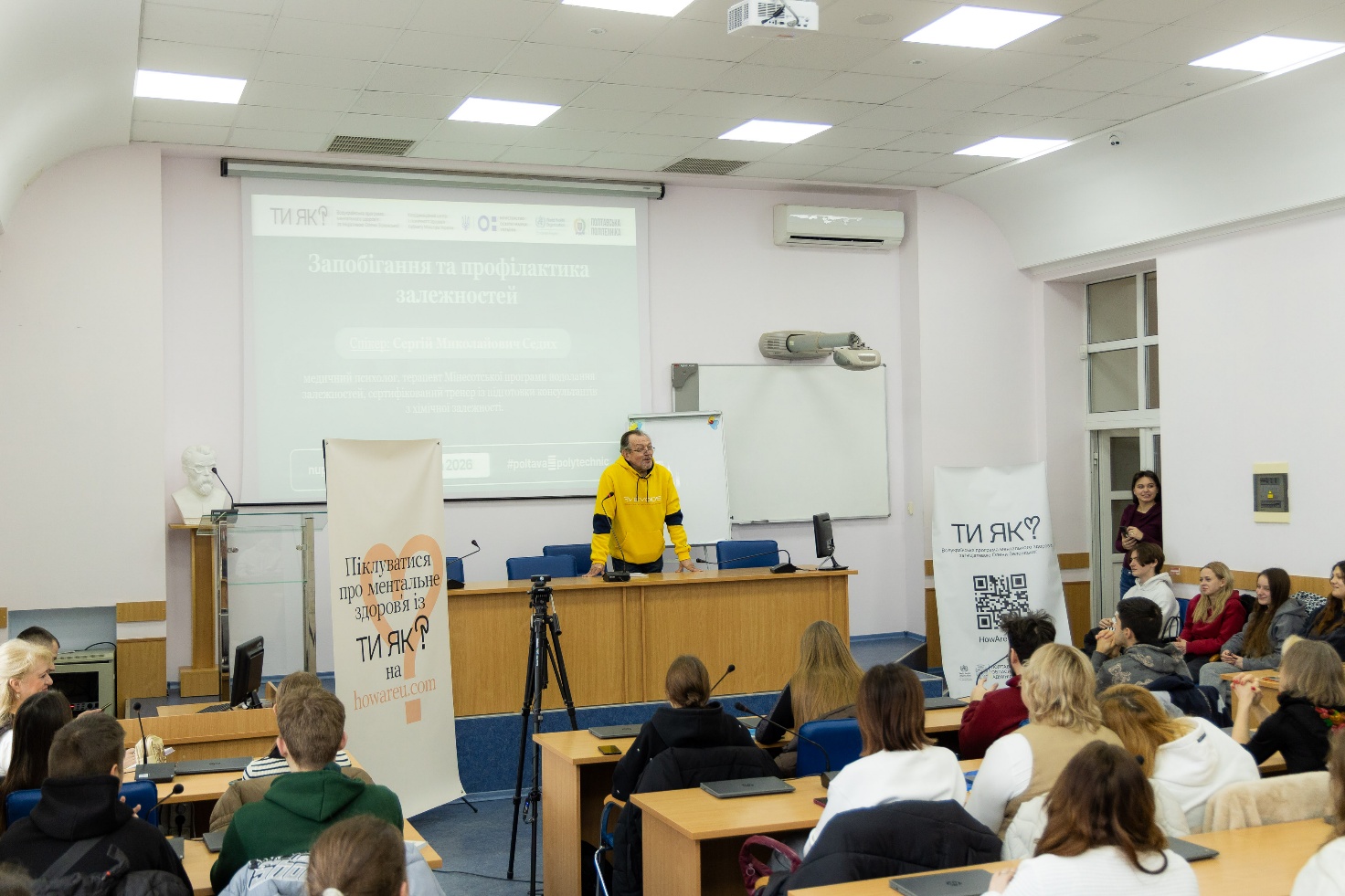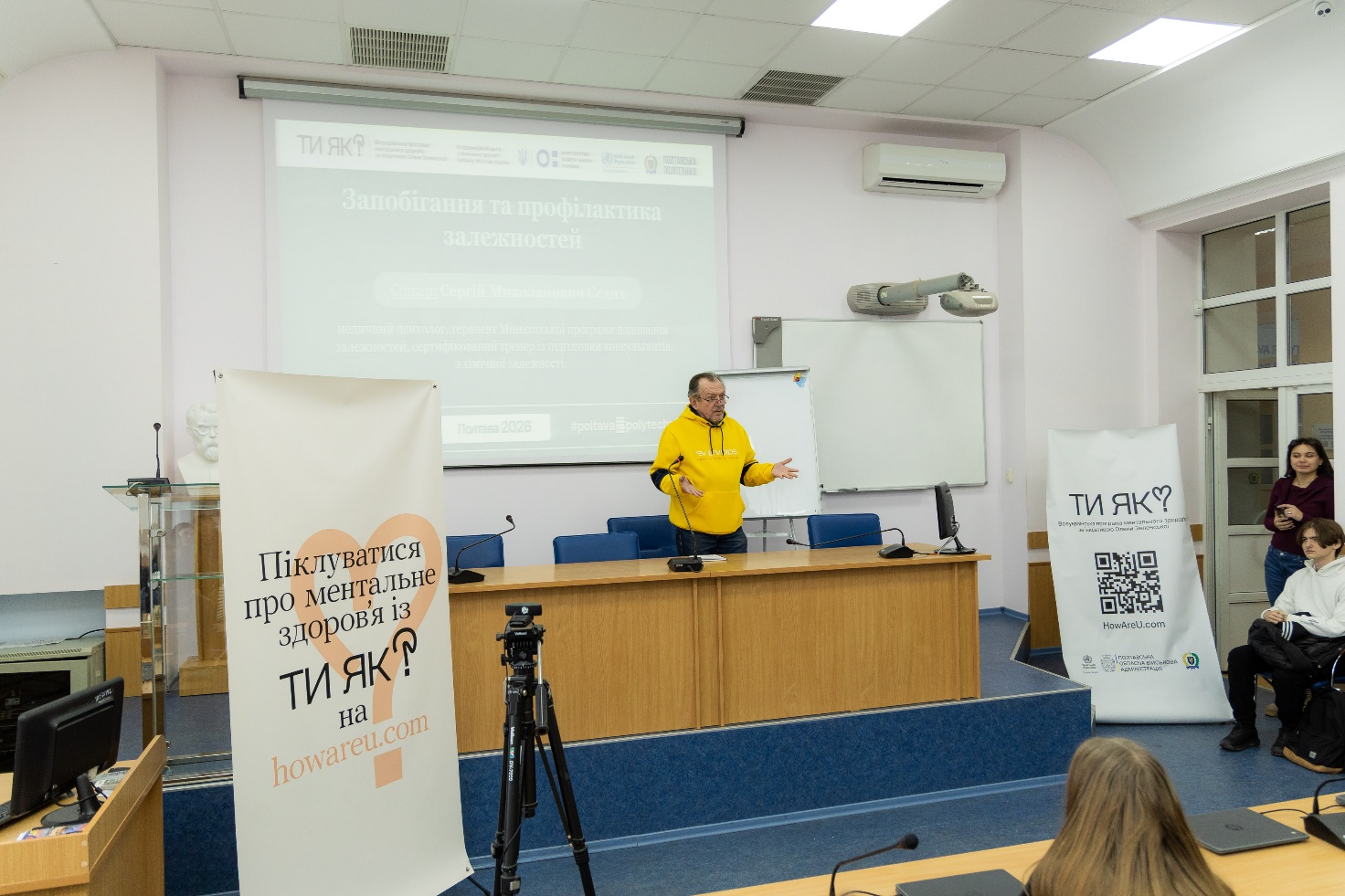 Спікер зустрічі – Седих Сергій Миколайович, медичний психолог, терапевт Мінесотської програми подолання залежностей та сертифікований тренер із підготовки консультантів з хімічної залежності. Його виступ був не просто лекцією, а живим діалогом, де звучали питання, що змушують замислитися: