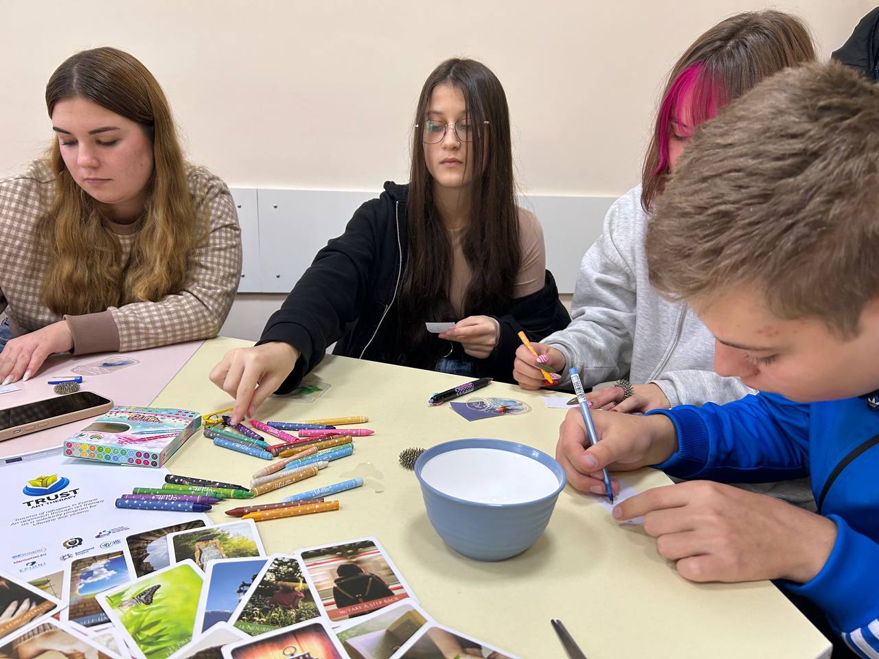 Робота розпочалася з важливого етапу встановлення довіри – вітального кола, де через ігрову проективну вправу створювалася доброзичлива атмосфера взаємодії. Далі учасники занурилися у процес «Моє море ресурсів». Ця екологічна вправа, поєднана з елементами візуалізації під звуки моря, мала на меті психоемоційну стабілізацію та заземлення. У період хронічної небезпеки відчуття стабільності часто руйнується; візуалізація та малювання «моря» як символу безмежного ресурсу та спокою дозволила психіці створити внутрішній контейнер безпеки. Студенти мали змогу графічно виразити все те, що дає їм відчуття сили, гармонії та підтримки у реальному житті, перетворюючи абстрактні поняття у візуальні образи.