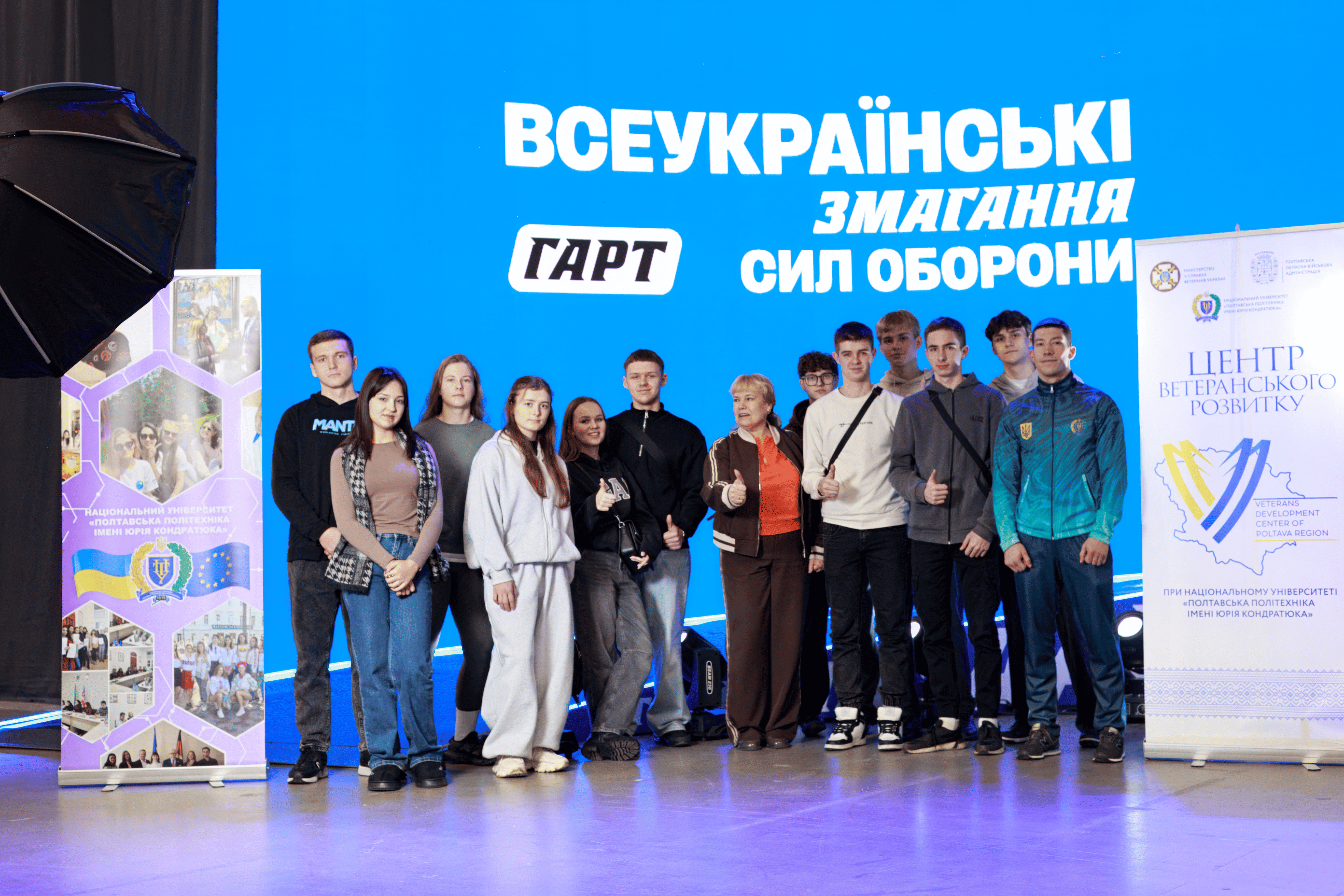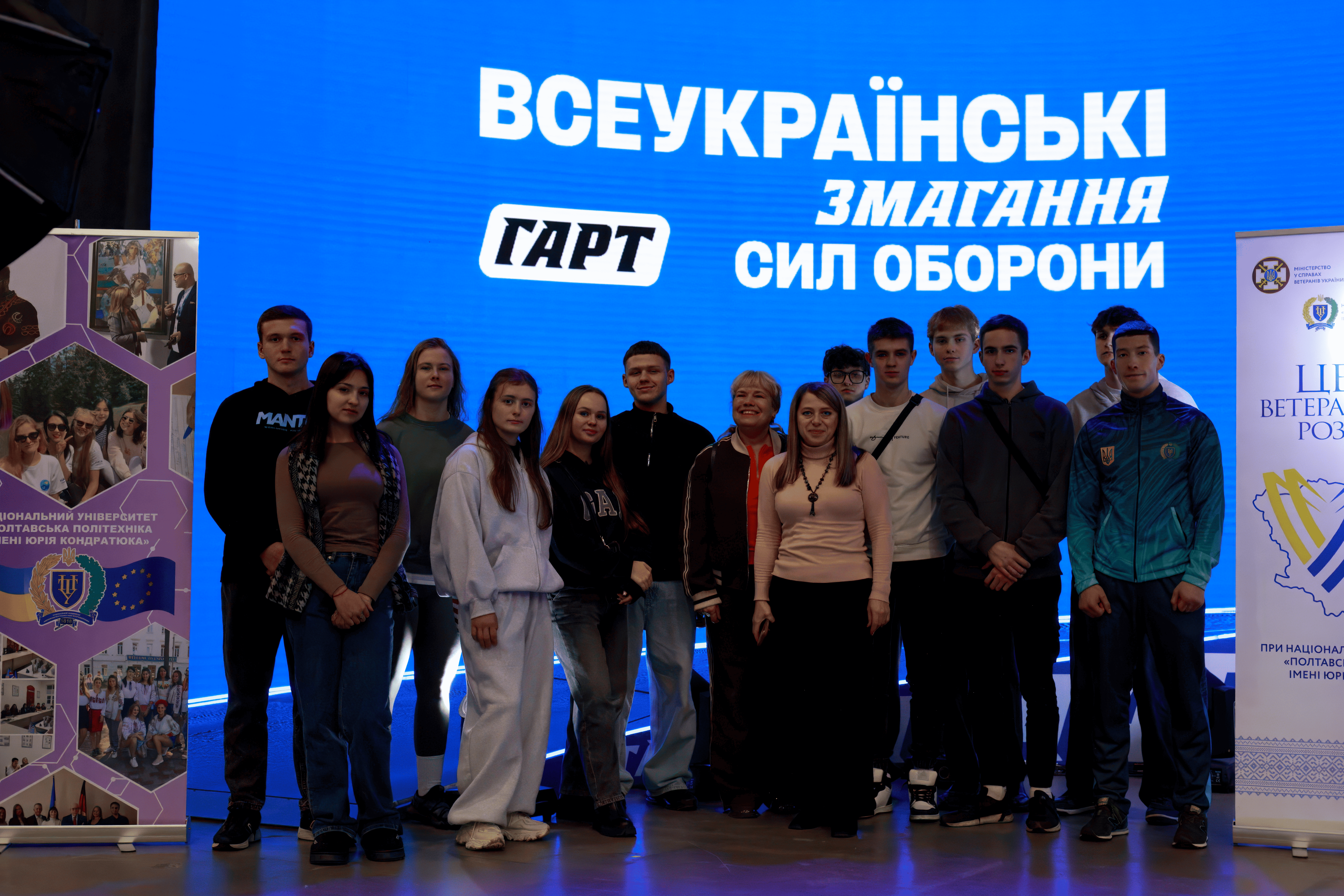 2 грудня студенти спеціальності А7 «Фізична культура і спорт» разом із деканом факультету фізичної культури та спорту Національного університету «Полтавська політехніка імені Юрія Кондратюка» Ліною Рибалко, завідувачкою кафедри фізичної культури та спорту Ларисою Оніщук і головою спортклубу університету Нікітою Соловей взяли участь у Всеукраїнських змаганнях Сил оборони «Гарт» серед ветеранів і ветеранок війни.