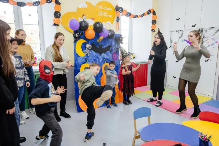 30 жовтня 2025 року приміщення Центру освіти та піклування про дітей дошкільного віку «Mr.Leader», що працює на базі Полтавської політехніки перетворилося на справжній будиночок казкових істот — із павутинням, кажанами, гарбузовими гірляндами та святковими вогниками. Малеча прийшла у яскравих костюмах привидів, відьмочок, людини-павука та інших героїв, наповнивши простір чарівним настроєм.