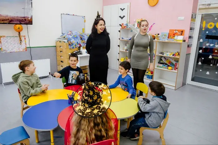 Вихователі разом зі студентками спеціальності «Дошкільна освіта» Полтавської політехніки організували для дітей пізнавально-розважальну програму: малюки брали участь у захопливих конкурсах «Вирощування орбізів та тваринок», «Виготовлення слайма», створювали аплікації-пазли «Павук» і залюбки прикрашали обличчя святковим аквагримом.