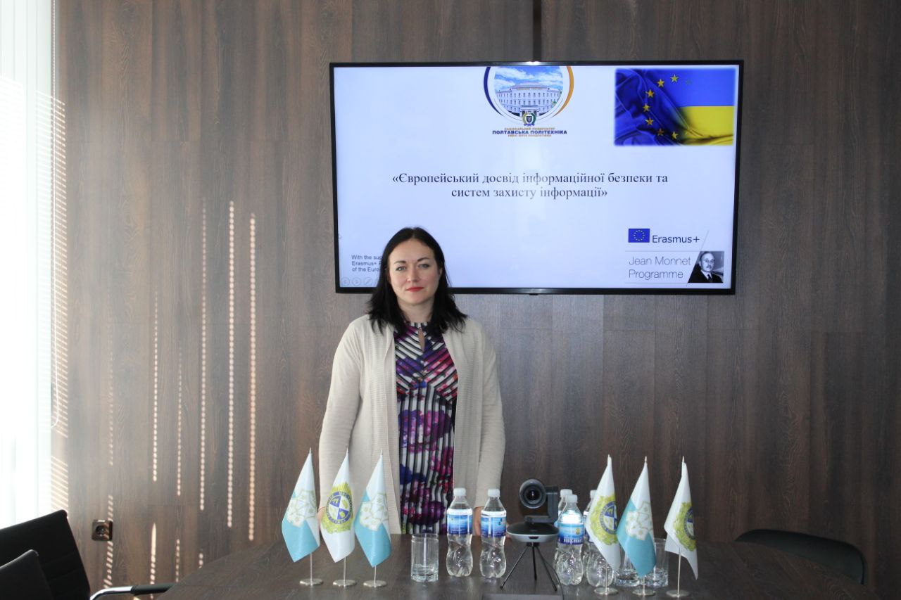 Проєкт Erasmus+ Жан Моне «Європейський досвід інформаційної безпеки та систем захисту інформації в сучасних умовах масштабних кібератак» (№ 101127542 – EEISIPS) представила заступниця директора ННІ ІТР Ксенія Вергал. Вона окреслила ключові напрями: аналіз європейських практик у сфері кіберзахисту, досвід країн ЄС у боротьбі з кіберзагрозами, інституційні та законодавчі підходи, а також перспективи розвитку цифрової безпеки в Україні.