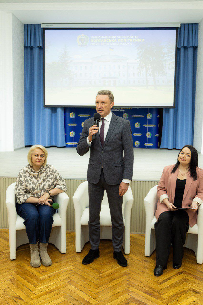 Із вітальним словом звернувся до учасників президент Національного університету «Полтавська політехніка імені Юрія Кондратюка», президент територіального відділення МАН України у Полтавській області Володимир ОНИЩЕНКО, який акцентував на позитивній динаміці активності учасників конкурсу-захисту науково-дослідницьких робіт МАН України. У цьому - запорука подальшого наукового поступу Полтавщини, зміцнення її позицій серед інших регіонів. Володимир ОНИЩЕНКО передав щирі вітання й побажання наукових перемог юним МАНівцям від президента Національного центру «Мала академія наук України», доктора фізико-математичних наук, професора, академіка НАН України, академіка НАПН України, члена президії Національної академії наук України Станіслава ДОВГОГО. Злагоджена співпраця університету з представниками різнорівневих органів міської влади з метою сприяння у проведені подібних конкурсів - добра традиція, яка має позитивну динаміку.