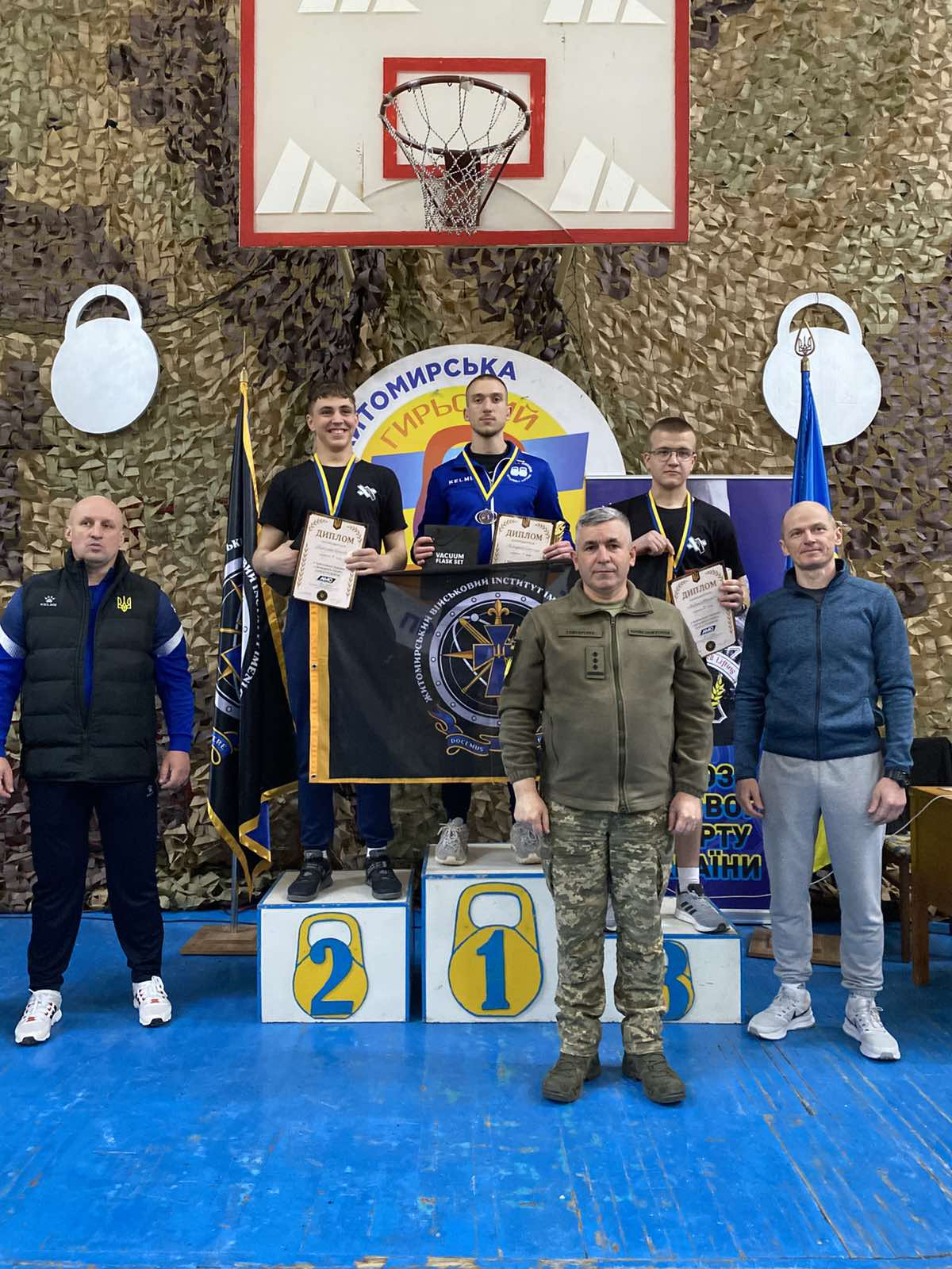 24–25 квітня у місті Житомир на спортивній базі Житомирського військового інституту імені С.П. Корольова відбувся Чемпіонат України серед студентів ЗВО з гирьового спорту. Команда Національного університету «Полтавська політехніка імені Юрія Кондратюка» виборола 1 загальнокомандне місце. Наші спортсмени продемонстрували силу, витривалість і справжній характер переможців, здобувши цілу колекцію нагород: