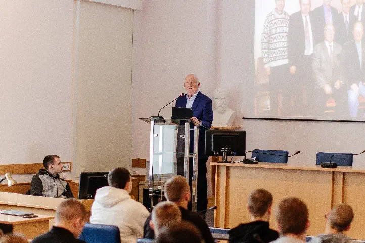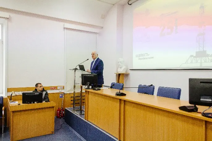 Під час лекції Віталій Григорович поділився історією створення та розвитку компанії «НТП «Бурова техніка», яка вже 25 років залишається одним із провідних сервісних підприємств нафтогазовидобувної галузі України. У своїй презентації він розповів про ключові етапи становлення компанії, партнерство з міжнародними сервісними компаніями, участь у галузевих виставках і конференціях та реалізацією масштабних інноваційних проєктів у нафтогазовидобувній галузі.