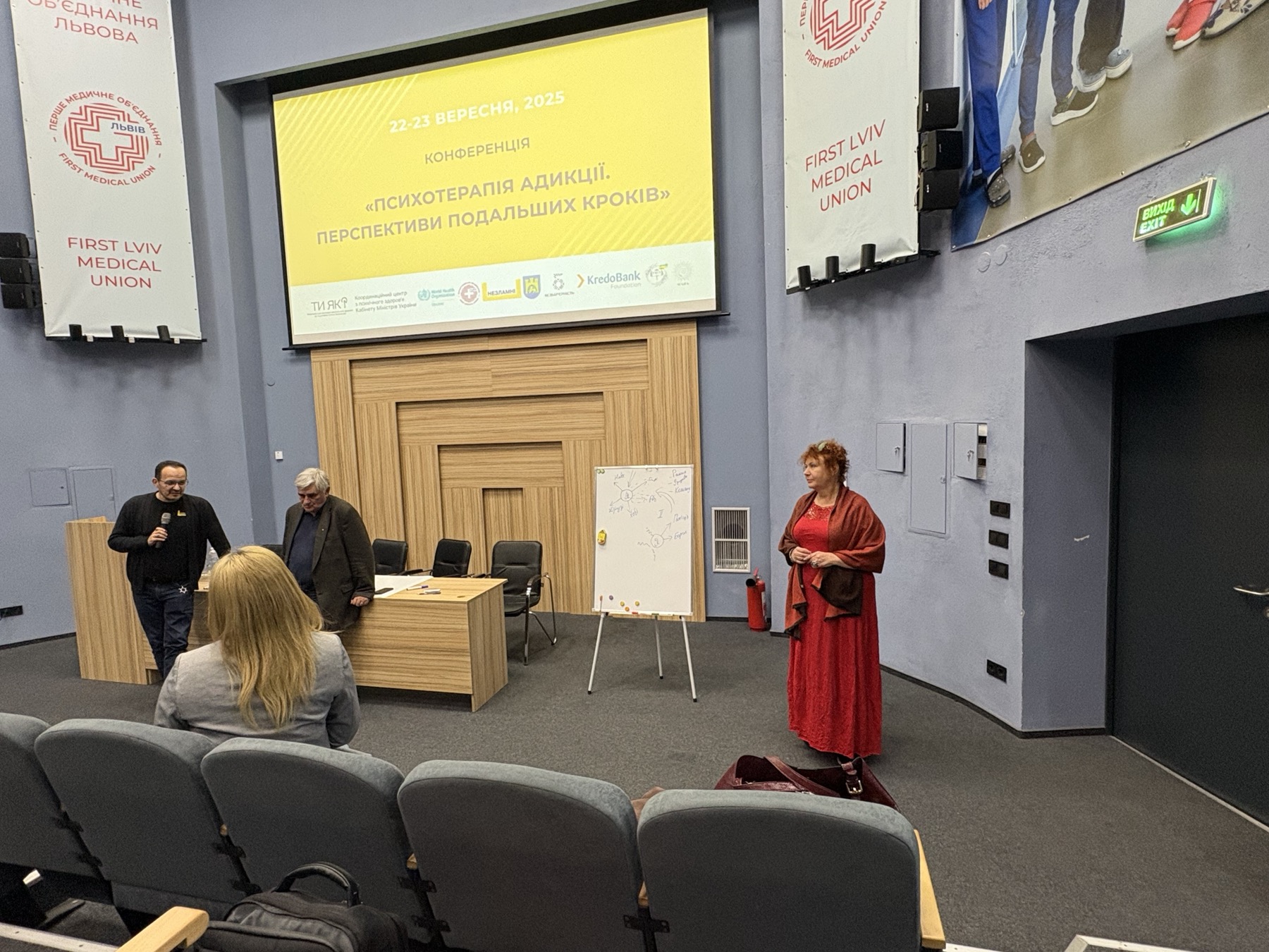 Професорка Полтавської політехніки Кіра Седих виступила з двома актуальними лекціями, що викликали значний інтерес у слухачів: «Реінтеграція адиктивних пацієнтів у соціум» та «Навчання в методі трансфігуративної психотерапії».