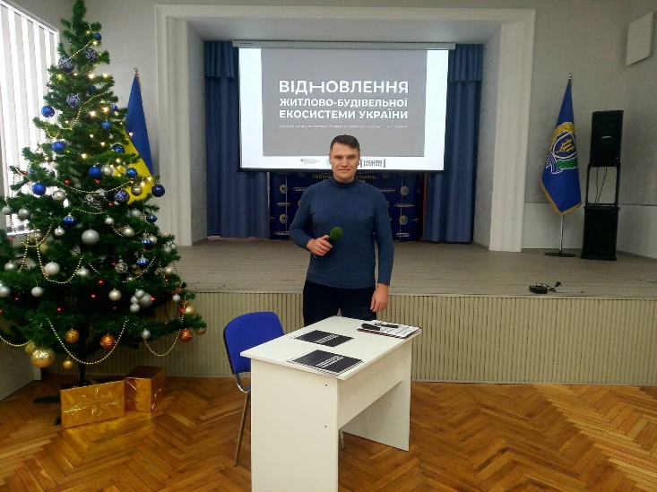 Ціль тренінгу – формування вмінь та навичок, необхідних для збалансованого розвитку територій, відновлення й відбудови зруйнованих сіл, селищ, міст з урахуванням особливостей економіки воєнного та післявоєнного часу у фронтових, прифронтових і тилових регіонах. В роботі тренінгу взяв участь Директор навчально-наукового інституту архітектури, будівництва та землеустрою, доктор архітектури, професор, заслужений архітектор України Вадім ВАДІМОВ.