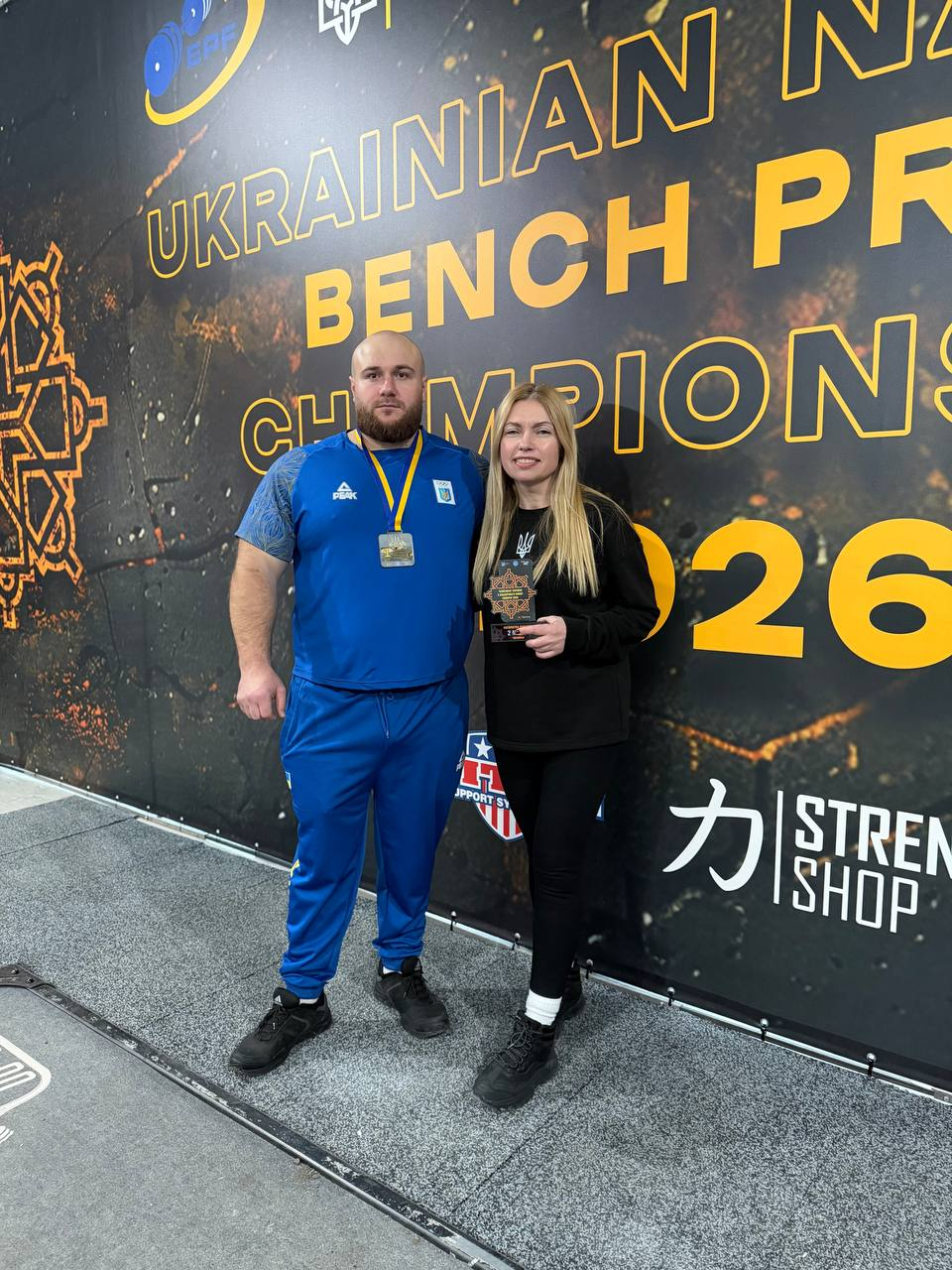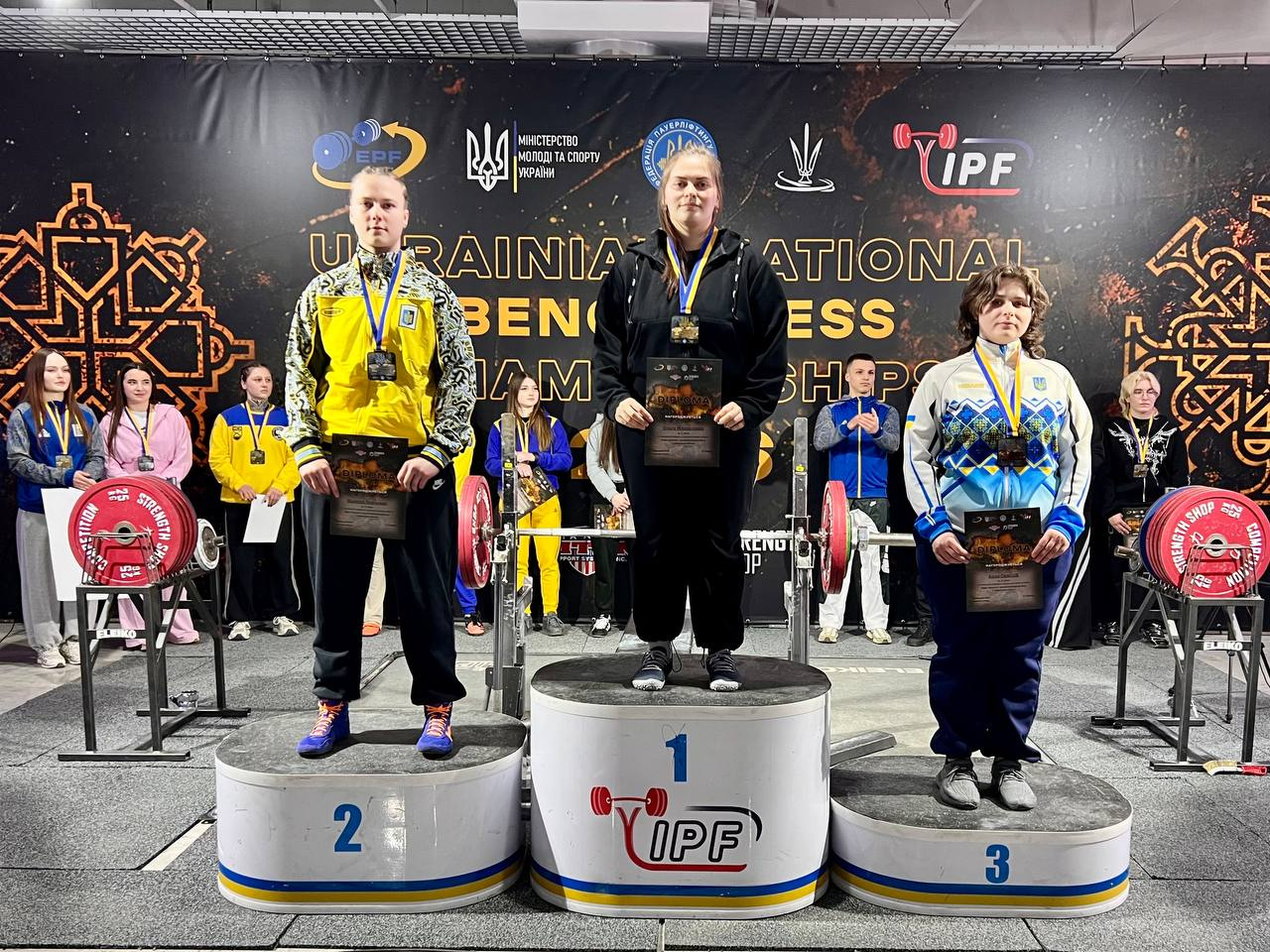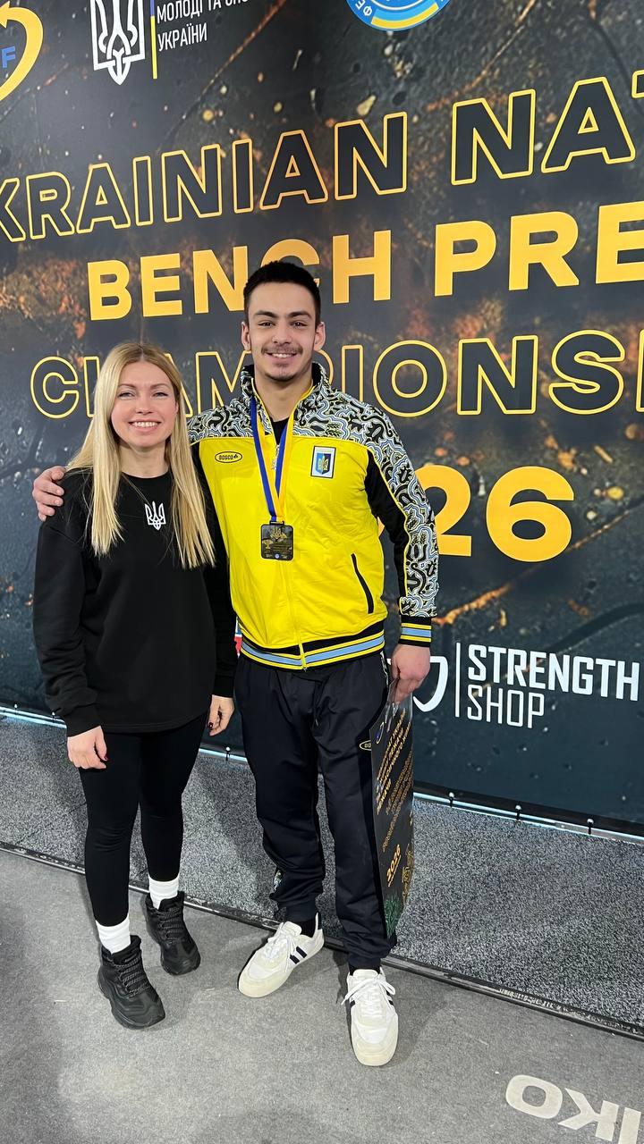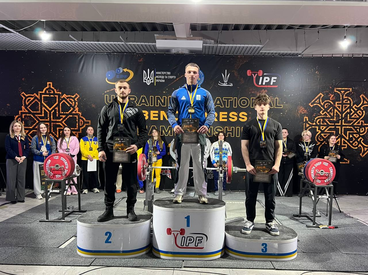 Два перші місця – Максим ГОЛЕНКО, студент групи 101 ФС факультету фізичної культури та спорту, який став переможцем у класичному жимі лежачи та жимі лежачи.
