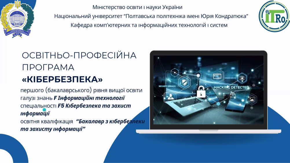 Навчання в Національному університеті «Полтавська політехніка імені Юрія Кондратюка» за спеціальністю F5 «Кібербезпека та захист інформації» – це поєднання сучасних знань, практики та наукових досліджень. Це шлях до стабільної, престижної, стратегічно важливої професії.