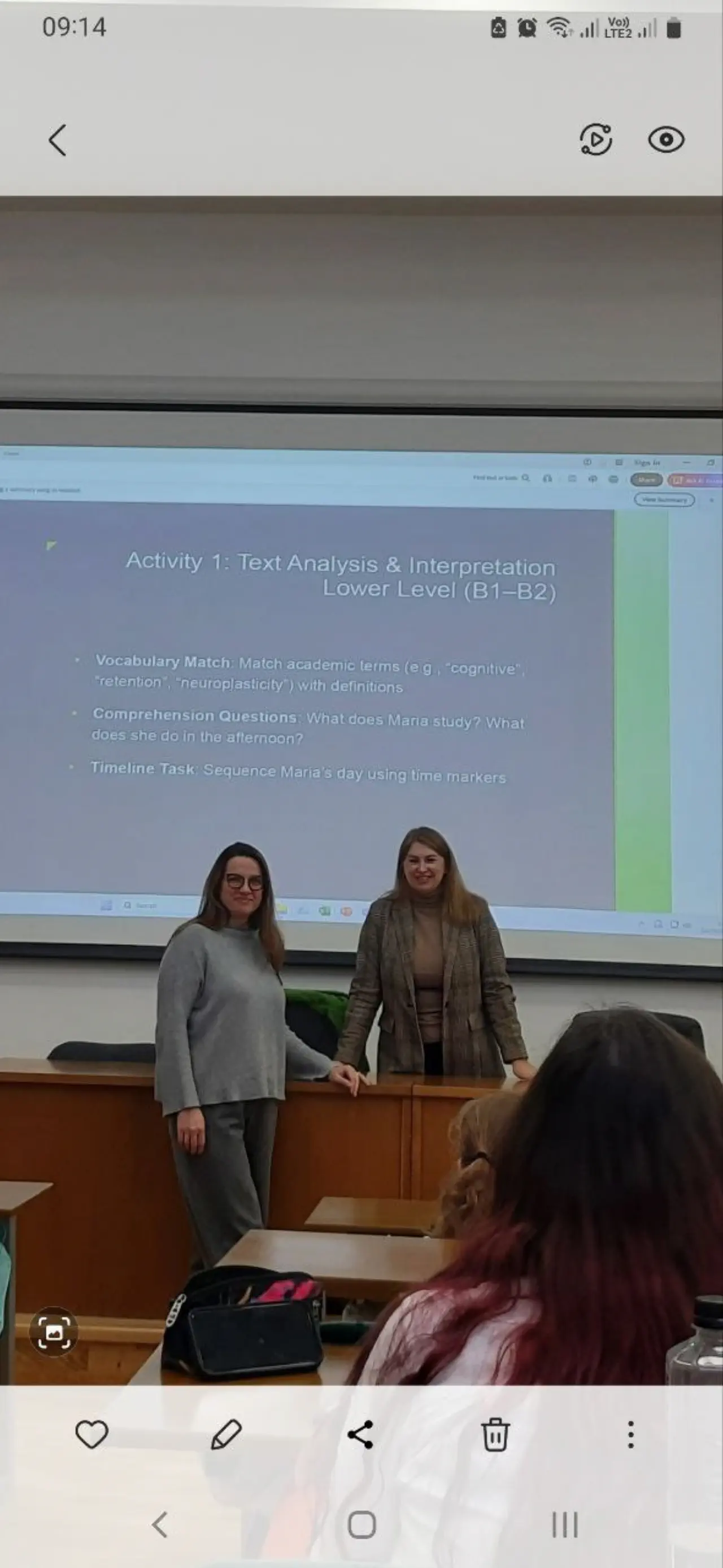 Винятково цінним досвідом стала можливість проведення занять для здобувачів вищої освіти Трансільванського університету Брашова. Особливо цікавими для міжнародної аудиторії виявилися теми, присвячені міжкультурному навчанню і викладанню, а також ефективним стратегіям роботи у групах змішаного рівня. Завершення презентацій викликало жваве обговорення серед студентів, підтверджуючи актуальність порушених питань.