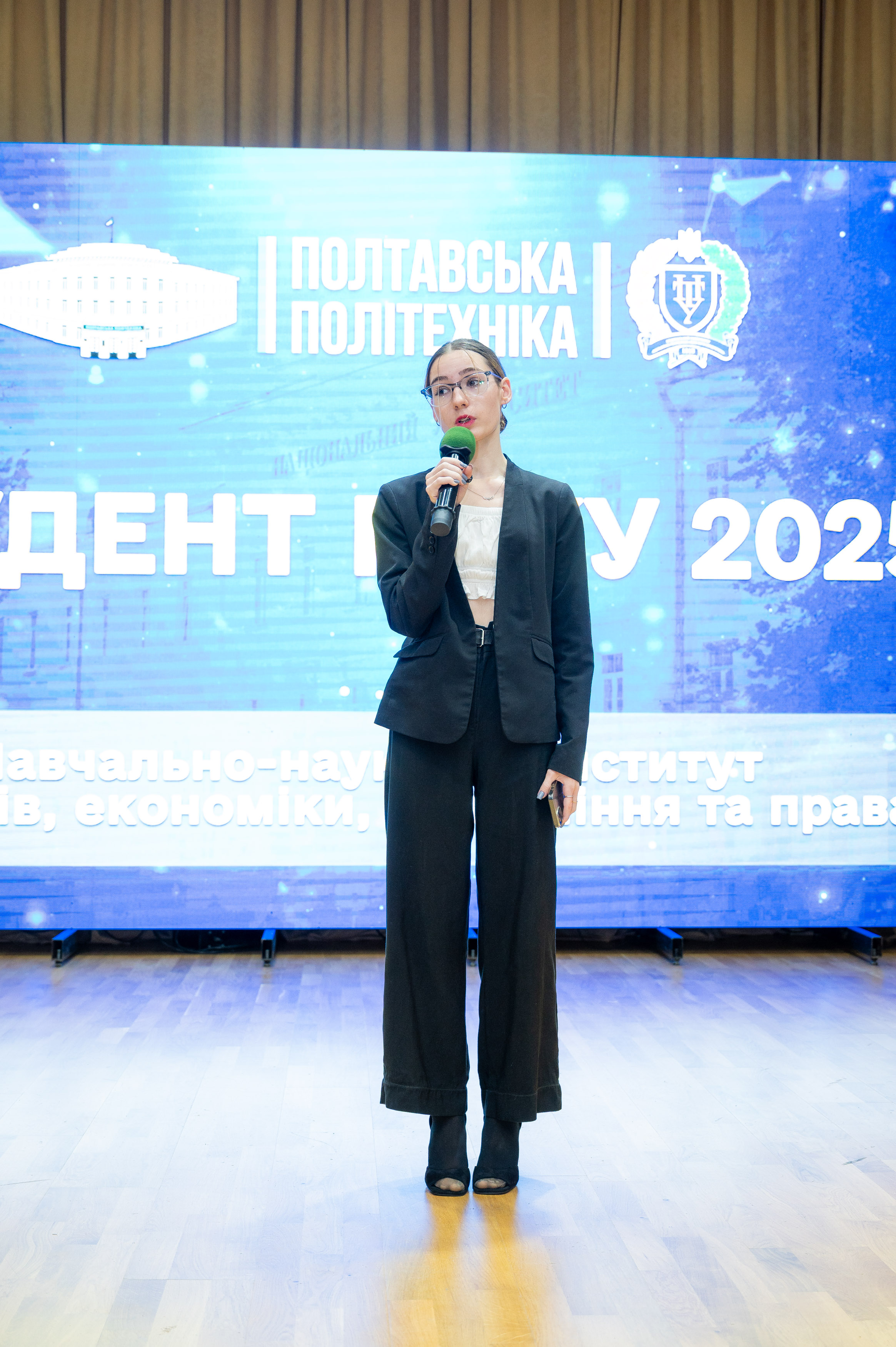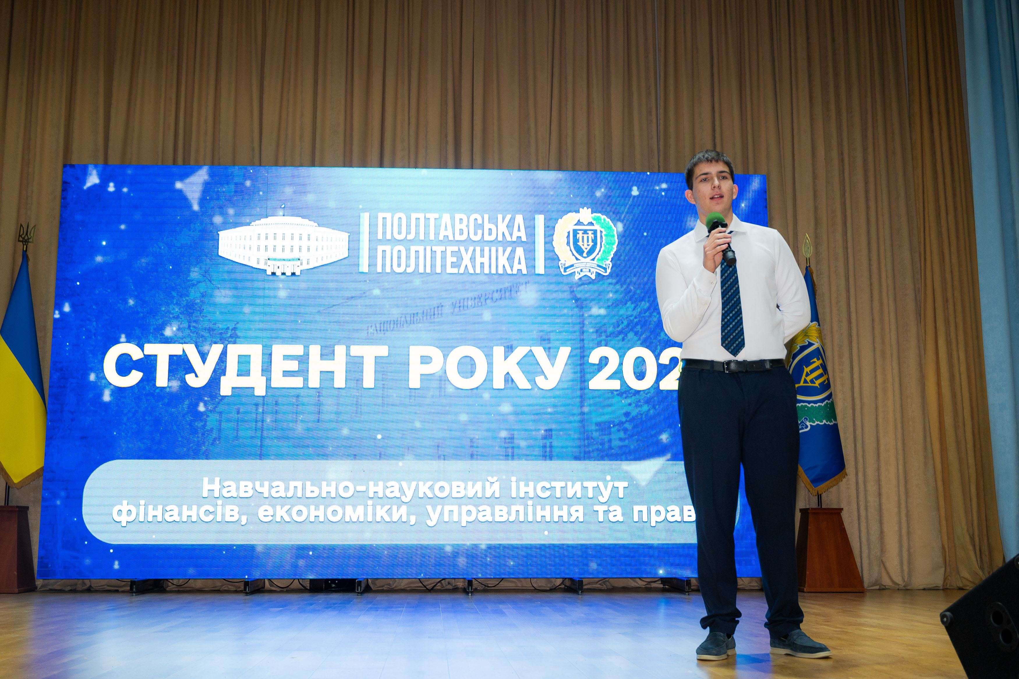 12 листопада 2025 року у Національному університеті «Полтавська політехніка імені Юрія Кондратюка» відбувся відбірковий етап конкурсу «Студент року – 2025» серед здобувачів освіти Навчально-наукового інституту фінансів, економіки, управління та права. Захід об’єднав активних, креативних і талановитих студентів, які в університеті не просто навчаються, а займаються саморозвитком і творчістю.