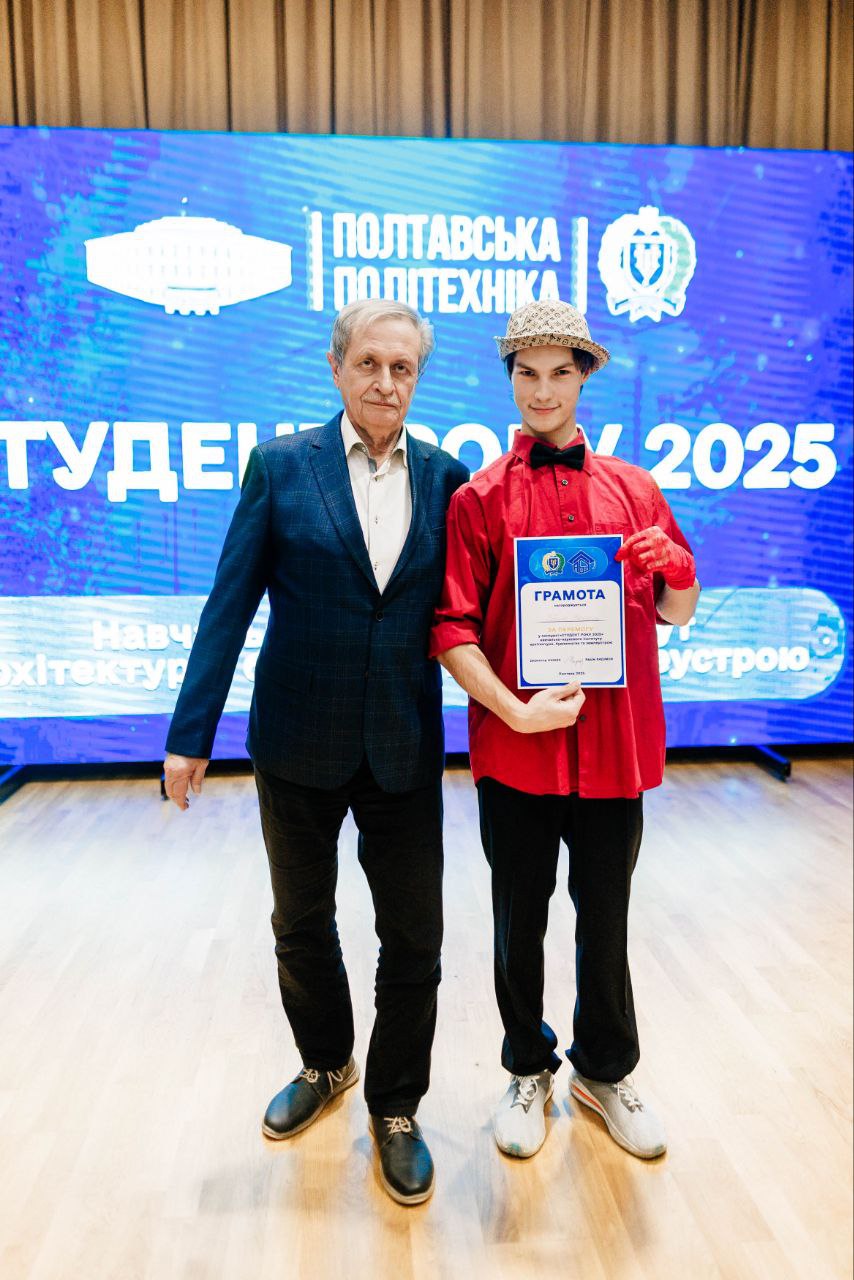 За результатами всіх етапів, переможцем відбіркового конкурсу «Студент року-2025» ННІ архітектури, будівництва та землеустрою став студент групи 401-БТ — Максим Бабенко. Його природний артистизм, упевненість і харизматична подача беззаперечно підкорили як журі, так і глядачів.