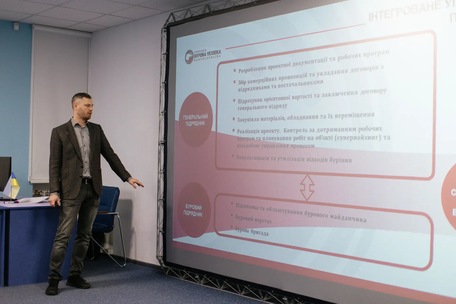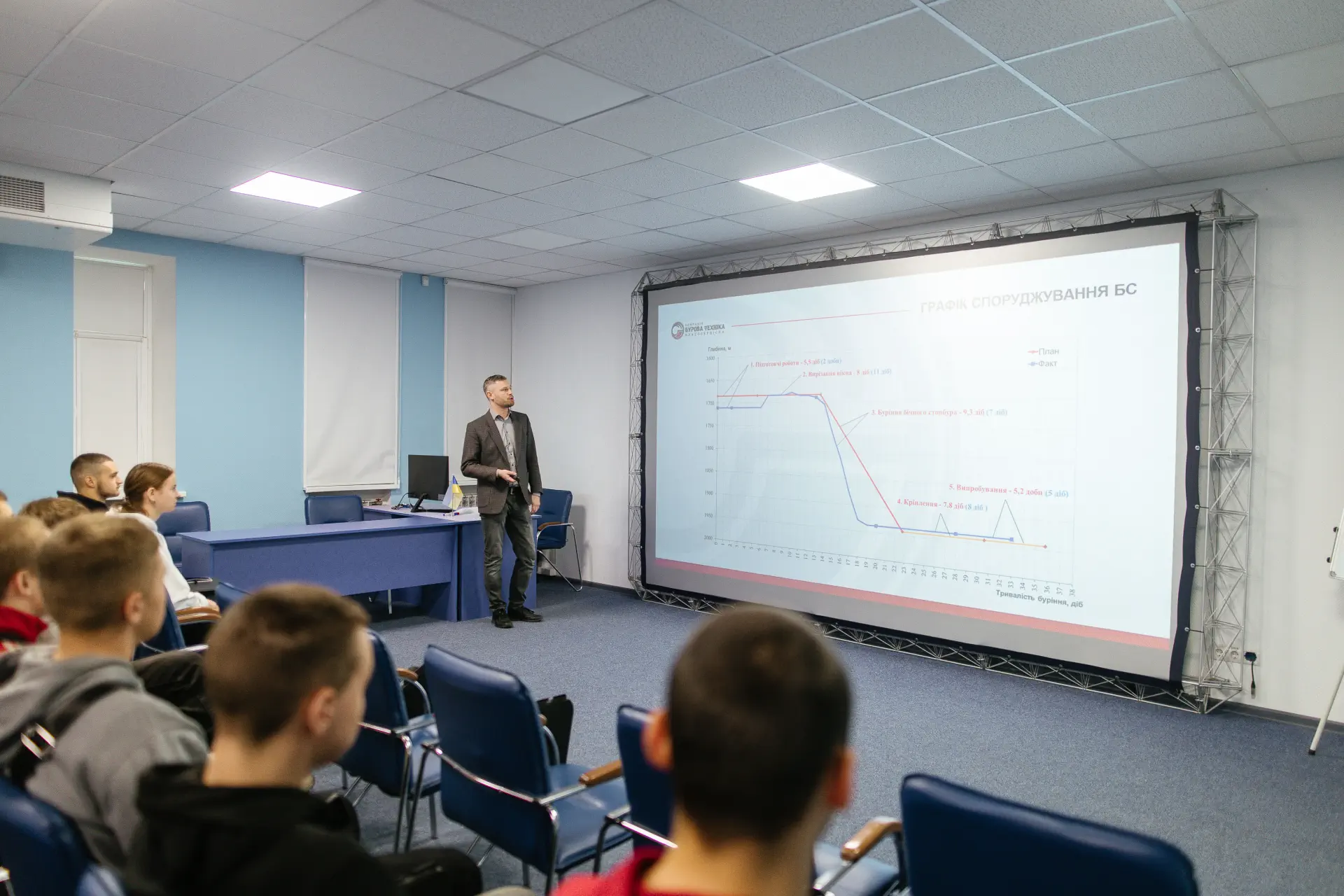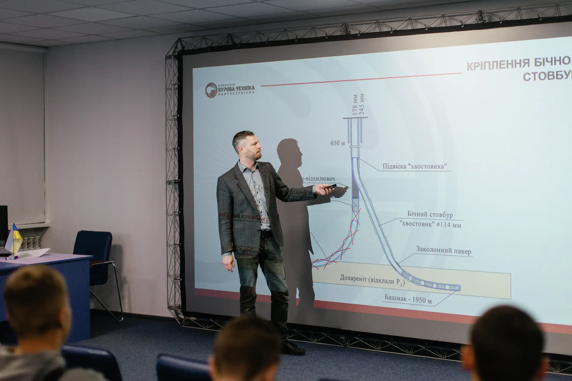 Особливу увагу лектор приділив бурінню бічних стовбурів — одній із найефективніших технологій підвищення нафтовіддачі пластів. Студенти дізналися про повний технологічний цикл таких робіт: від вибору свердловини до інтегрованого управління проектом, а також обговорили питання економічної ефективності похило-скерованого буріння у порівнянні з бурінням нових свердловин.