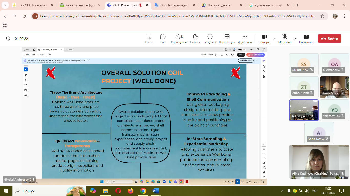Практична частина проєкту була зосереджена на розробці інновацій для компанії UAB «Maxima LT», яка є найбільшою роздрібною мережею в Балтійському регіоні. Студенти кафедри менеджменту і логістики, серед яких Олександра Адамова, Валерія Довгаль, Анна Іващенко, Марія Строчко, Марина Герасименко, Владислав Петрусевич та Дмитро Якимов, працювали у складі міжнаціональних команд. Кожна група розв’язувала реальні бізнес-кейси: від розвитку власної торгової марки «Well Done» та електронного магазину «Barbora» до вдосконалення програми лояльності «Aciu» та оптимізації логістичних процесів шляхом створення нового центру у Вільнюсі.