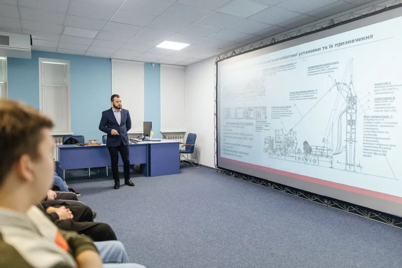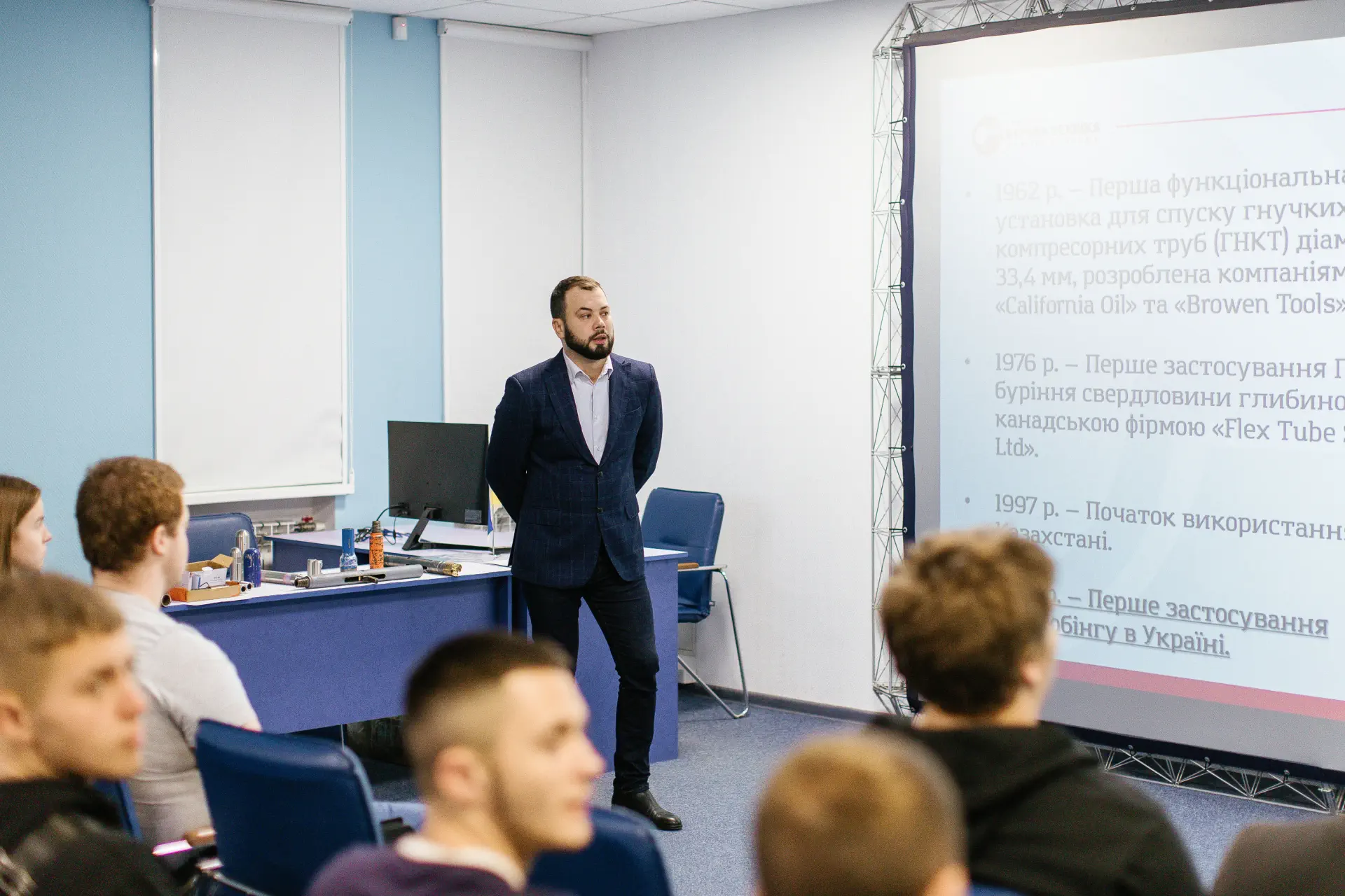 Студенти активно ставили запитання, дискутували та намагалися глибше зрозуміти принципи роботи з гнучкими насосно-компресорними трубами, моделювання руху рідин і використання внутрішньосвердловинного інструменту. Атмосфера живої дискусії перетворила лекцію на справжній професійний майстер-клас.