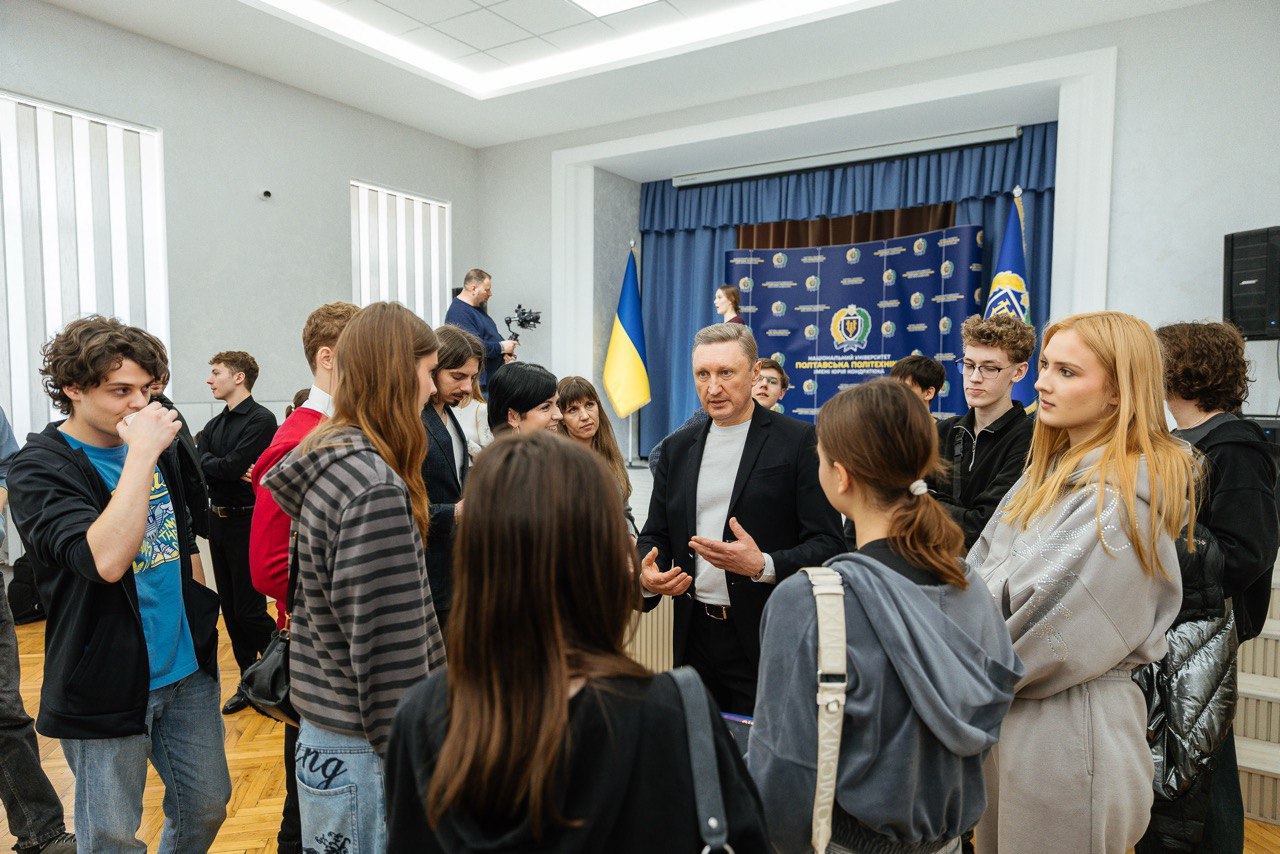 Досвідчений управлінець і стратег розвитку Володимир Онищенко не лише привітав абітурієнтів, а й став справжнім драйвером події, особисто презентувавши масштабну університетську екосистему можливостей. Він поділився з молоддю власною формулою успіху, прикладом здорового способу життя та надихнув на майбутні перемоги. Слова президента Полтавської політехніки стали справжнім мотиваційним імпульсом для всіх присутніх у залі, зарядивши майбутніх абітурієнтів упевненістю у власному виборі.
