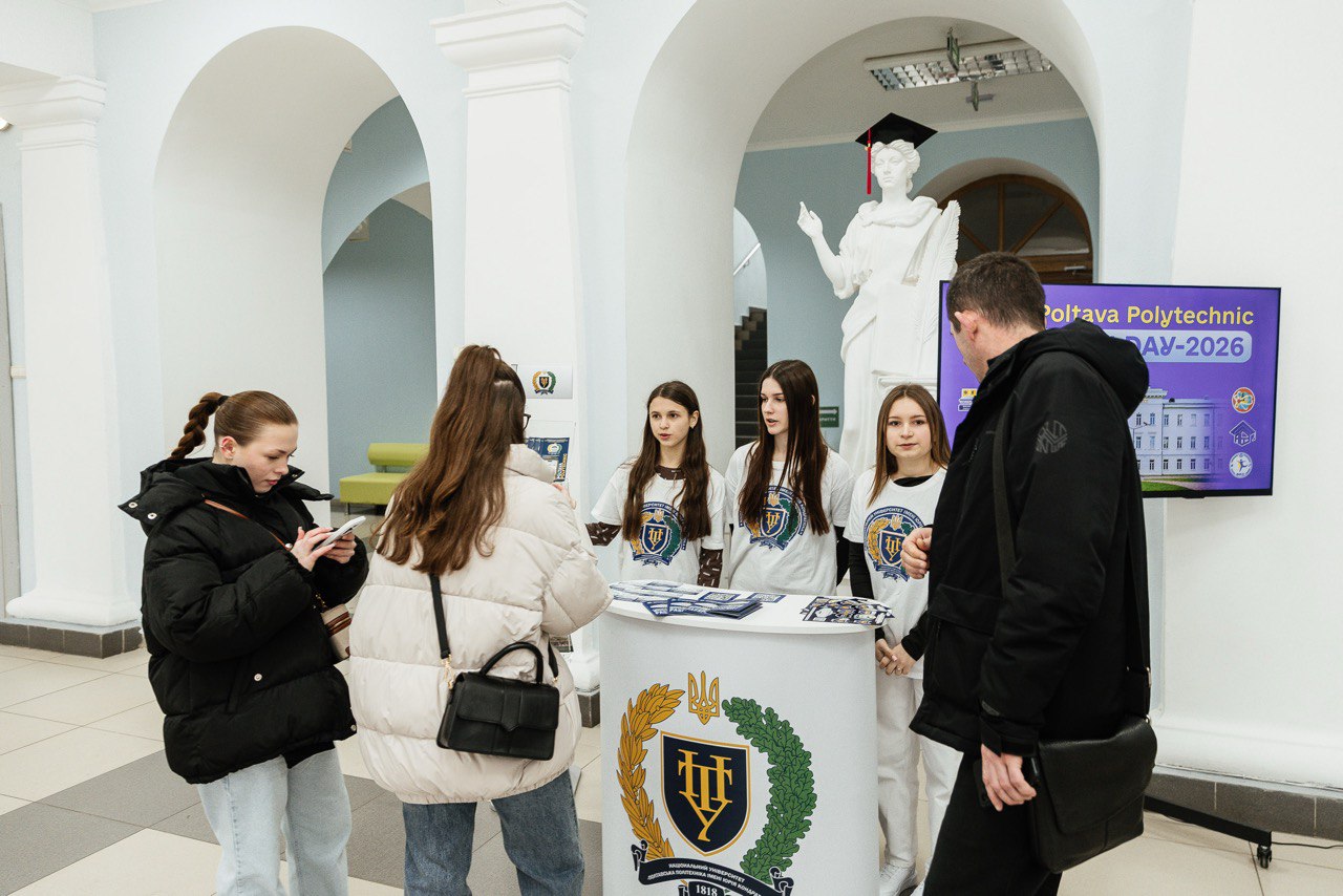 Кожен майбутній випускник школи, який зареєструвався на POLTAVA POLYTECHNIC OPEN DAY, отримав символічний «Паспорт абітурієнта» — справжній путівник у світ студентського життя, в якому містилася програма заходу, інформація щодо навчально-наукових інститутів і факультетів класичного університету, а також «Календар вступника» з ключовими датами вступної кампанії – 2026.