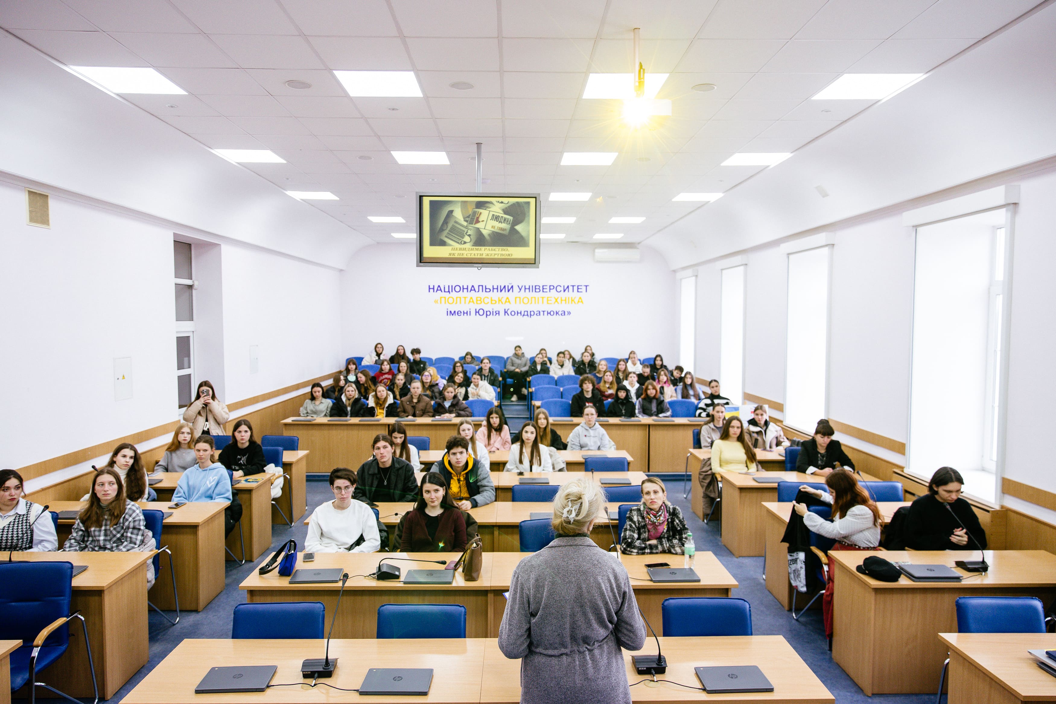 «Свобода починається з усвідомлення. А сила – з вибору». Під таким гаслом 16 жовтня у Національному університеті «Полтавська політехніка імені Юрія Кондратюка» відбулася інтерактивна зустріч для студентів – «Невидиме рабство. Як не стати жертвою», приурочена до Європейського дня боротьби з торгівлею людьми.