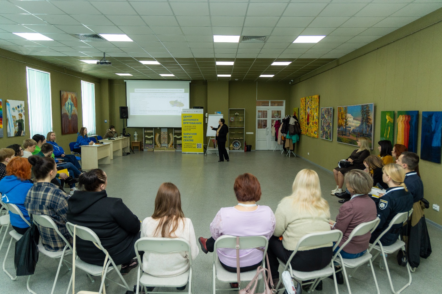 Учасники також розглянули портрет людини, постраждалої від СНПК, особливості ідентифікації таких осіб, принципи чутливої комунікації та механізми перенаправлення до відповідних служб допомоги. Окремим блоком тренінгу стала профілактика емоційного вигорання фахівців та питання самозбереження у професійній діяльності.
