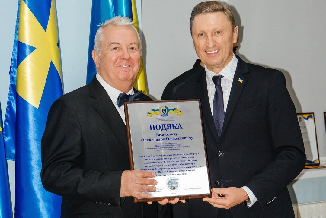 Також суддя міжнародної категорії зі спортивного більярду, кандидат педагогічних наук Олександр Безносюк вручив Подяку Президенту університету, професору Володимиру Онищенку за розвиток більярдного спорту серед школярів, студентів, науково-педагогічних працівників закладів вищої освіти та з нагоди п’ятої річниці відкриття більярдного клубу.