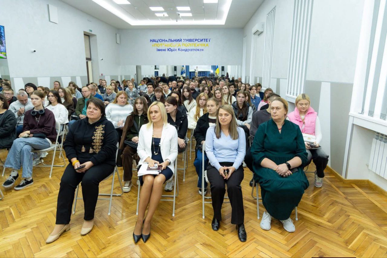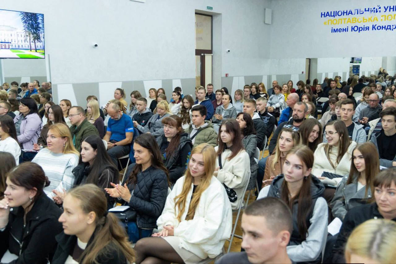 Сьогодні провідний заклад вищої освіти класичного типу – Національний університет «Полтавська політехніка імені Юрія Кондратюка» – гостинно відкрив двері для амбітної, креативної та цілеспрямованої молоді, яка невдовзі відбудовуватиме суверенну Україну та творитиме її щасливе майбутнє. У залі університету відбулася зустріч президента Полтавської політехніки, Президента Полтавського територіального відділення МАН України Володимира Онищенка, директорів/деканів навчально-наукових інститутів і факультетів з майбутніми абітурієнтами. Учасниками події стали школярі випускних класів, їхні батьки та педагоги не лише з Полтави, а й Кременчука, Горішніх Плавнів, Великобагачанської, Шишацької, Диканської, Карлівської, Супрунівської, Мачухівської громад, а також ліцею з м. Берестин Харківської області. Частина закладів освіти приєдналася онлайн у форматі Zoom-конференції.