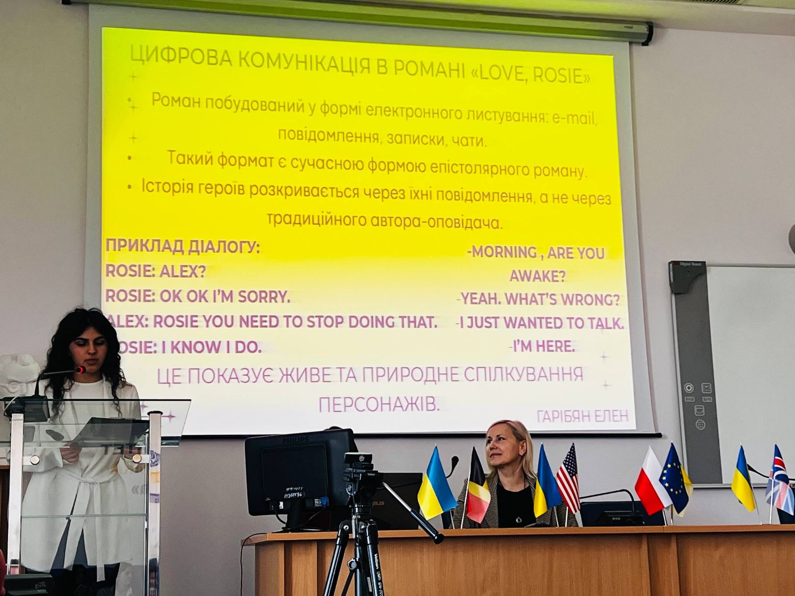 - Перекладознавство та міжкультурна комунікація: труднощі перекладу ідіом, реалій у кіно та серіалах (наприклад, «Stranger Things», «Alice in Wonderland»), а також особливості ділового та геймерського спілкування.