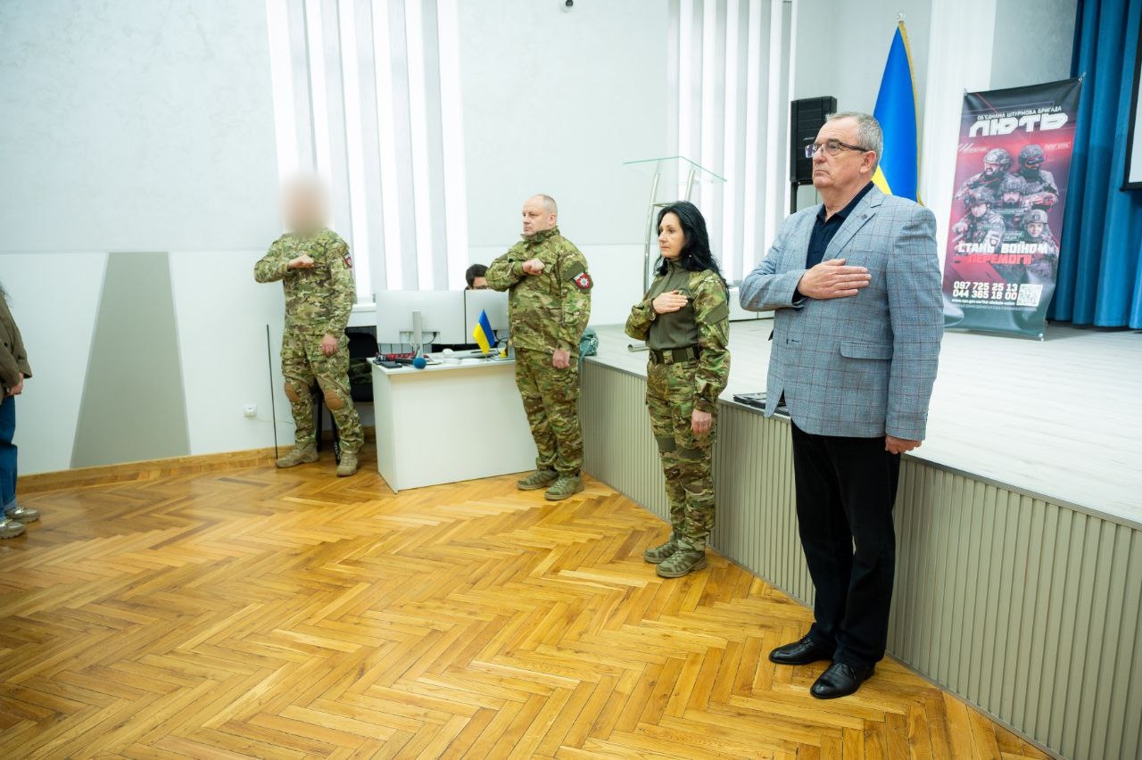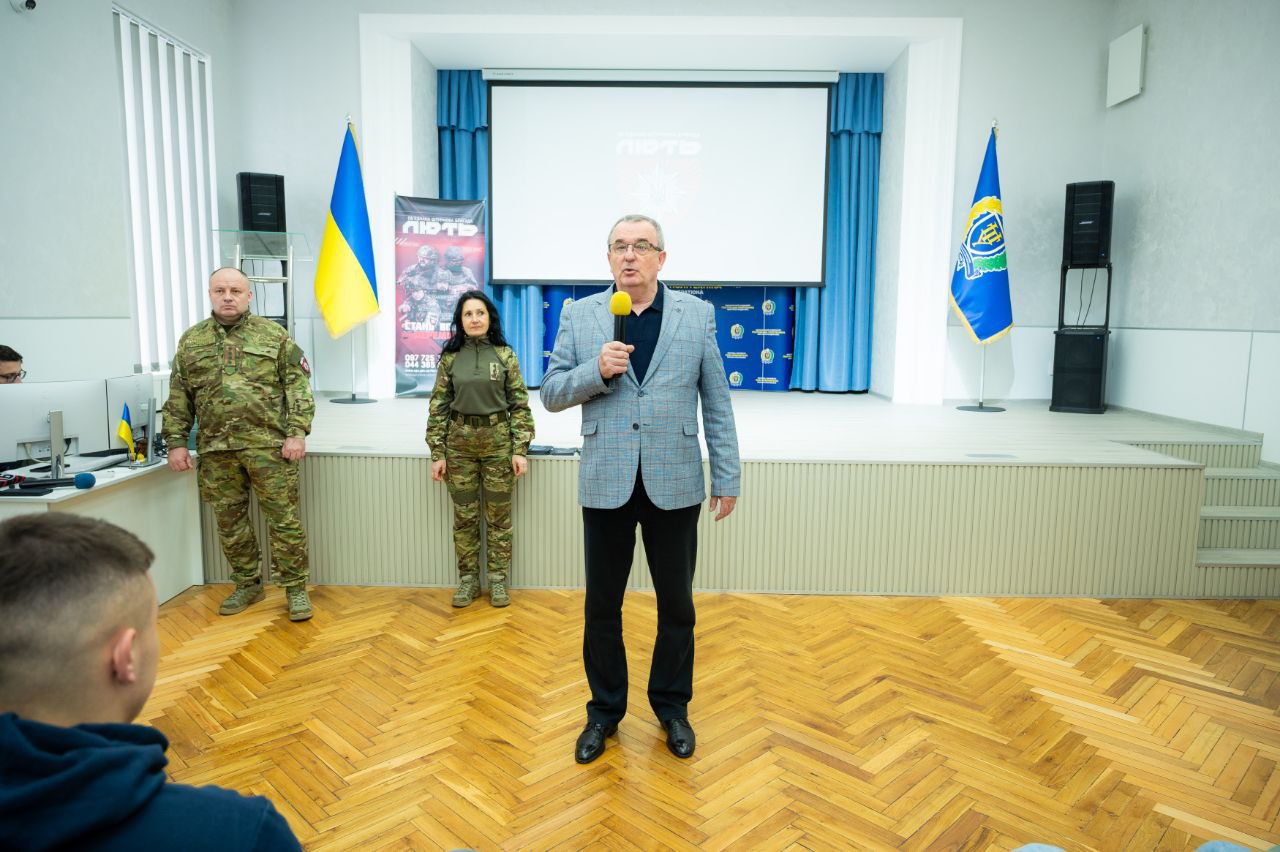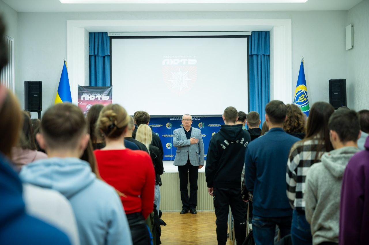 На початку заходу проректор з науково-педагогічної роботи, кандидат військових наук Анатолій Мартиненко представив студентам представників бригади «Лють». Проректор подякував поліцейським бригади «Лють» за проведення мотиваційної зустрічі національно-патріотичного спрямування для молоді.