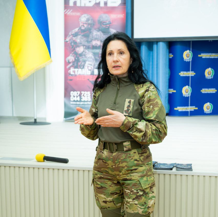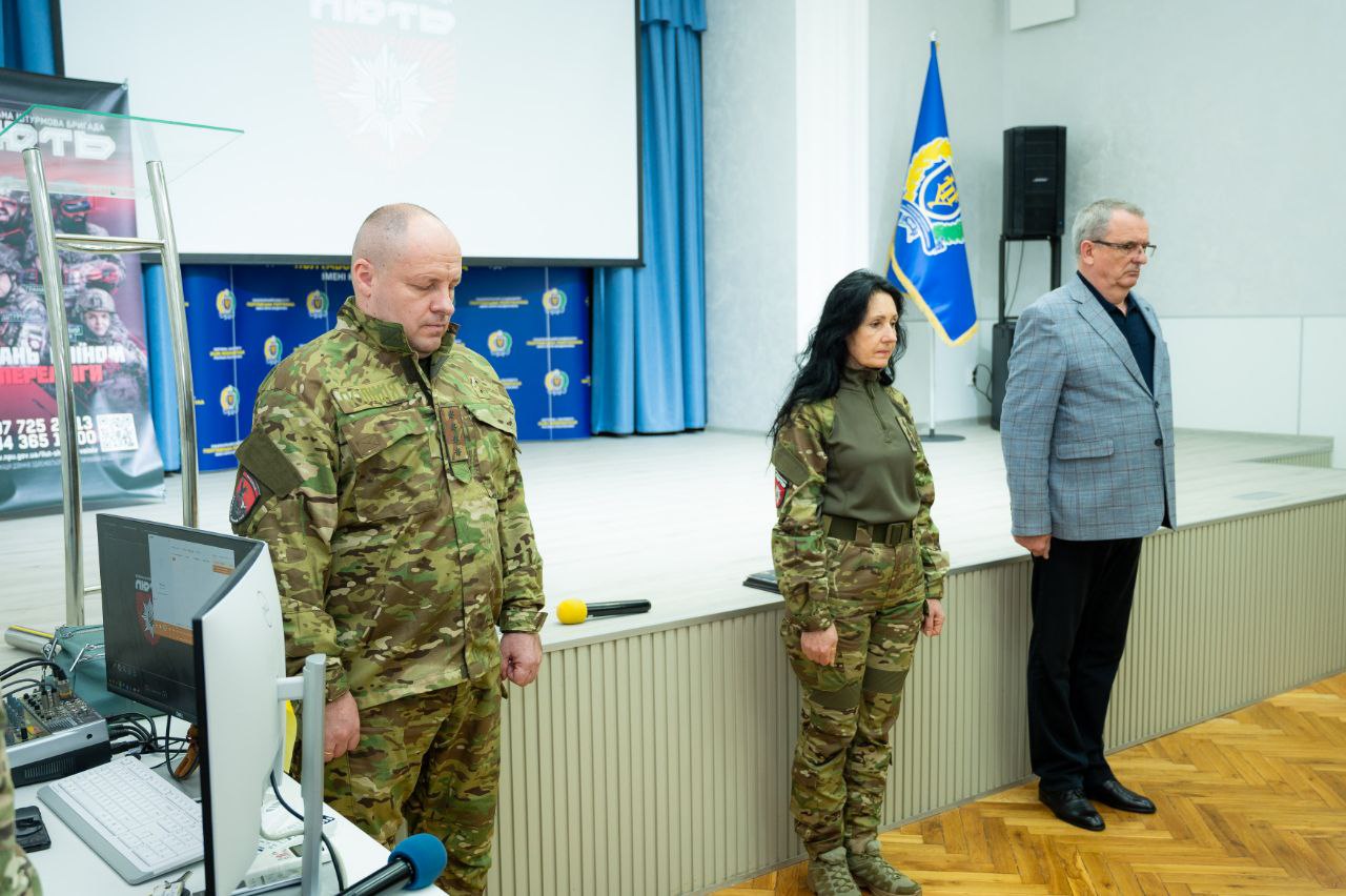 Начальник відділу організації відбору Об'єднаної штурмової бригади Національної поліції України «Лють», полковник поліції Тамара Прокопенко висвітлила історію бригади «Лють», яка розпочала шлях існування від 13 січня 2023 року та детально розповіла студентам про етапи відбору у поліцейський підрозділ та переваги бригади, зокрема її ролі у захисті суверенітету та територіальної цілісності України.