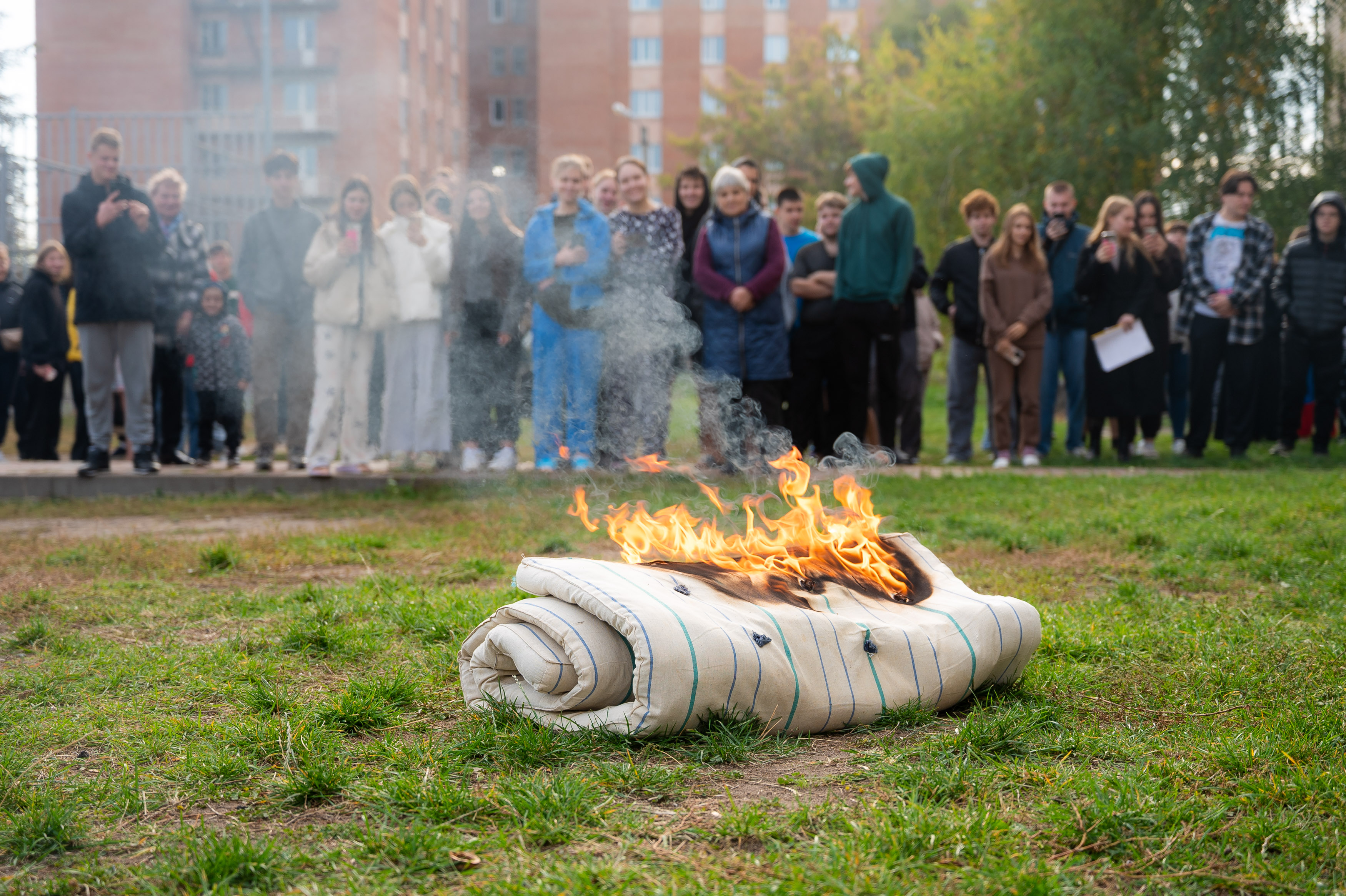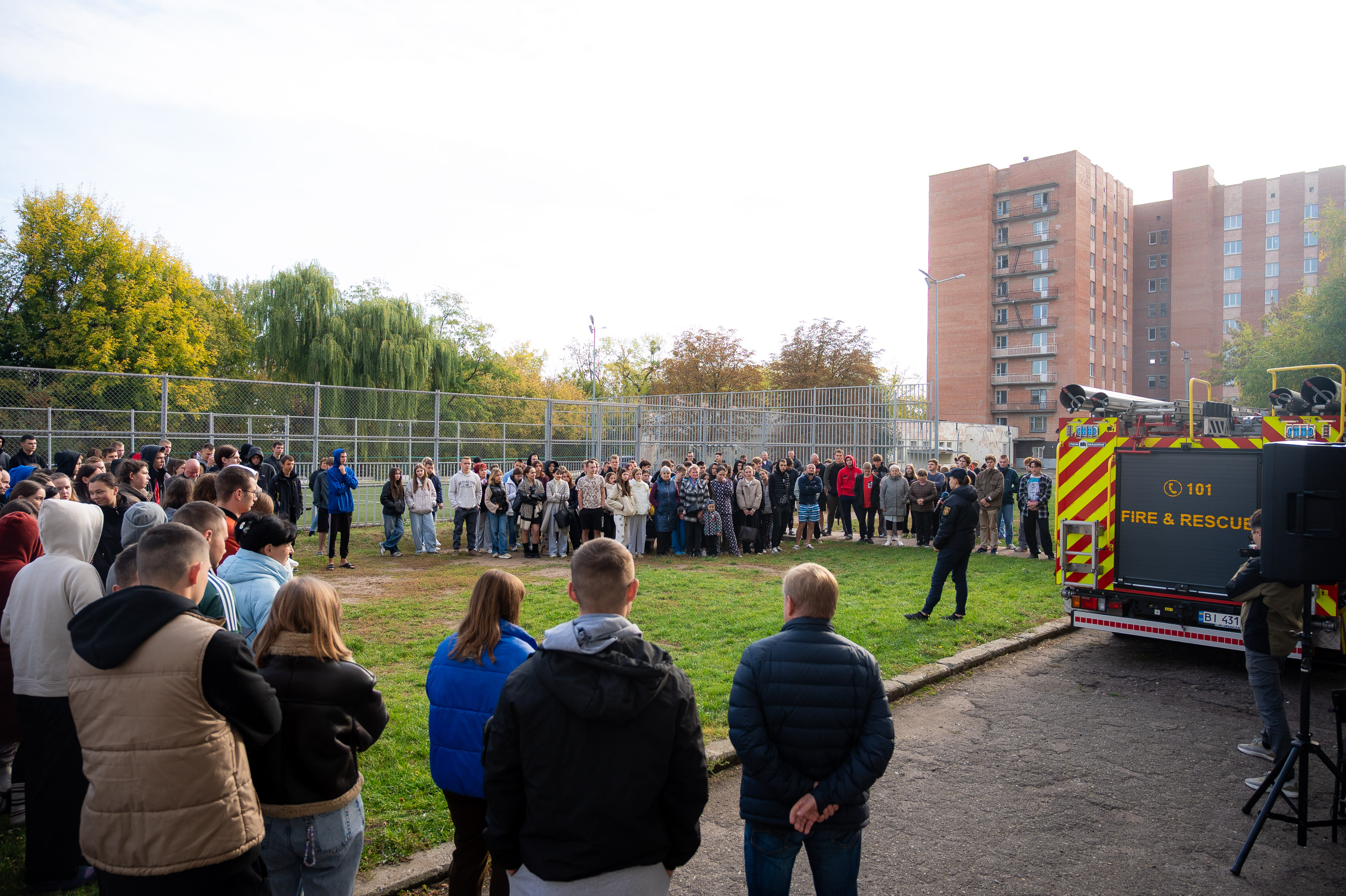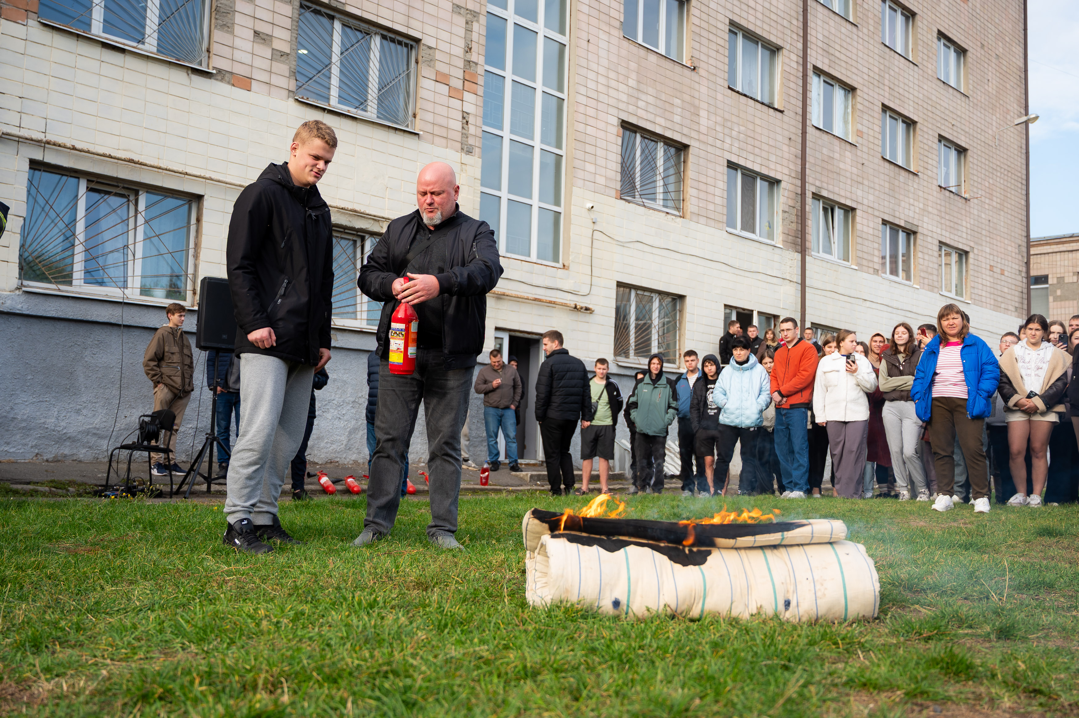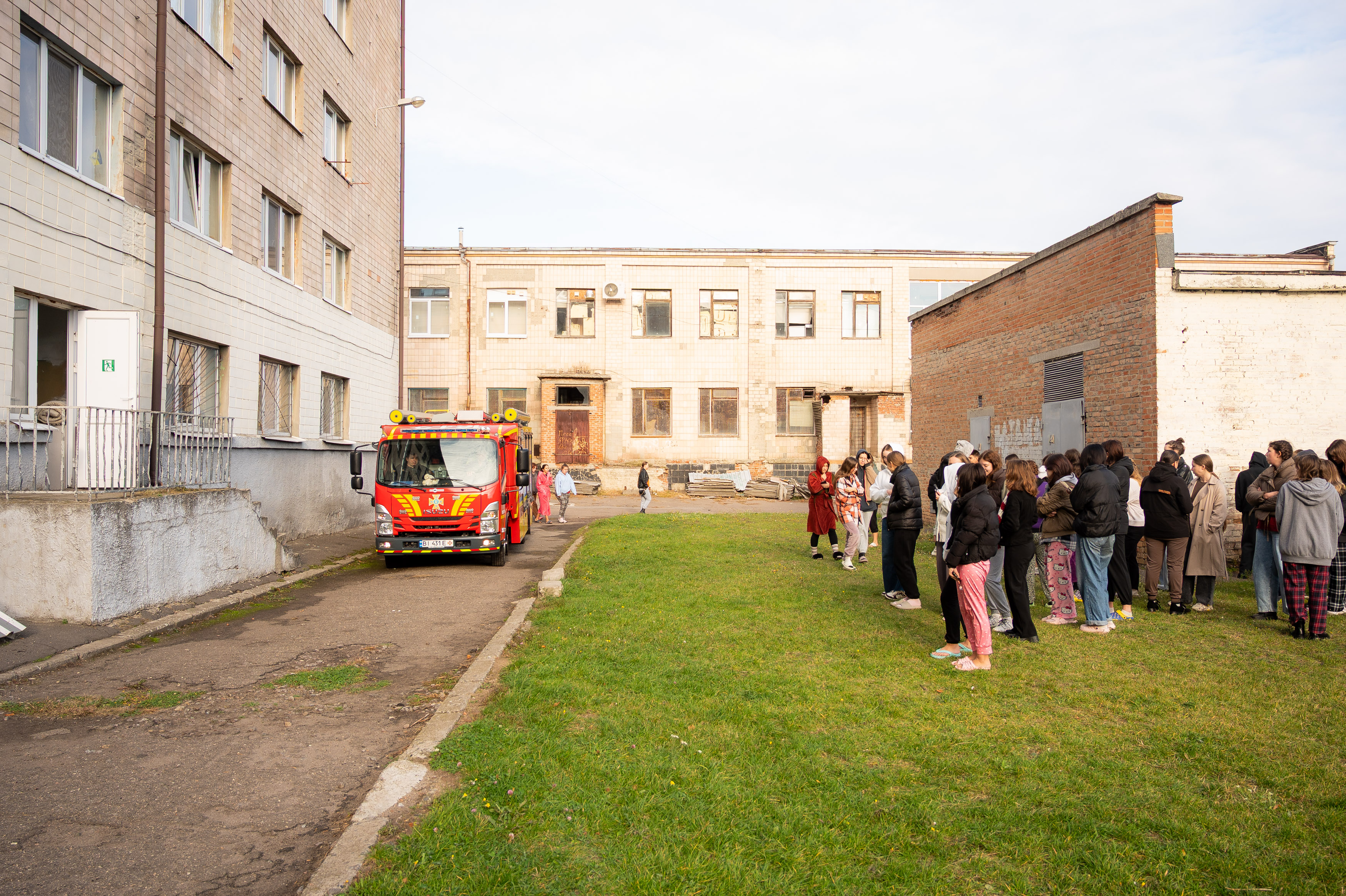 Завершальним етапом тренувань стало практичне відпрацювання навичок користування первинними засобами пожежогасіння. Працівники університету, персонал гуртожитків і студенти мали змогу під керівництвом рятувальників відточити вміння правильно та безпечно користуватися вогнегасником.