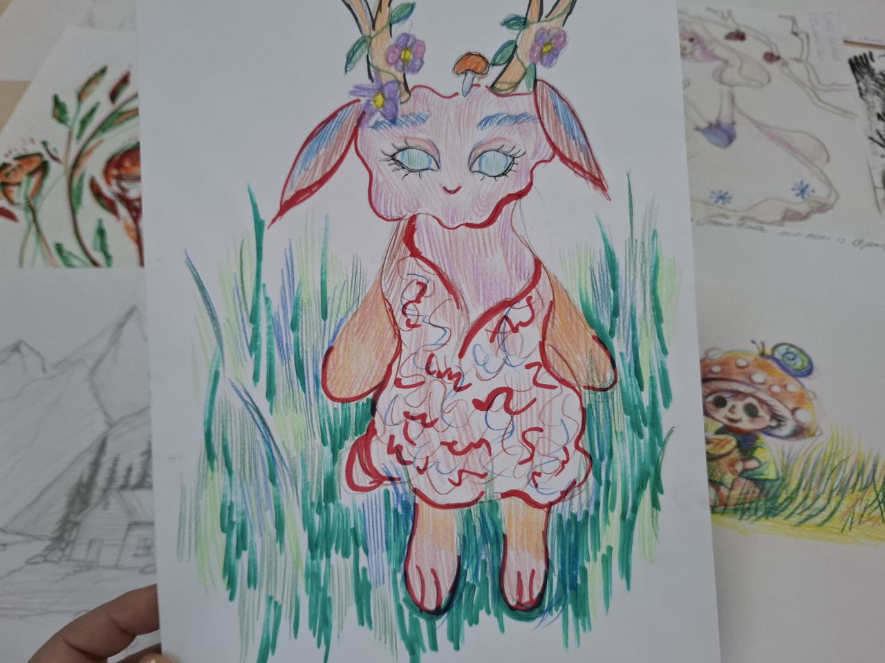 Унікальність цієї арттерапії полягала в поєднанні художнього вираження через елементи природи. Учасники отримали аркуші паперу та різноманітні графічні матеріали, але головним інструментом була сама природа. Захід розпочався із занурення в атмосферу: під звуки вечірнього лісу та палаючого багаття модераторки Олена Острогляд та Марина Тесленко запропонували учасникам розслабитися, заплющити очі та поринути у пошуки свого внутрішнього «Я». Звуки шуму листя та тріскоту гілок у вогні допомагали відволіктися від тривожних думок. Після медитації учасникам було запропоновано знайти своє відображення в елементі природи. Це міг бути будь-який об’єкт: від маленького камінчика, що символізує стійкість, до краплі дощу, що означає сльози та очищення; від гнучкої гілки, що символізує адаптивність, до могутнього дуба, що означає силу. Потім присутні створювали візуальний образ цього елемента, додавши до нього свої почуття та асоціації. Це міг бути детальний малюнок або ж абстрактна композиція, що передавала емоції. В процесі роботи учасники могли взаємодіяти, обговорюючи свої відображення. Наприкінці всі роботи були розміщені разом, утворюючи єдину колективну інсталяцію, що символізувала спільну подорож та взаємозв’язок між людьми та природою.