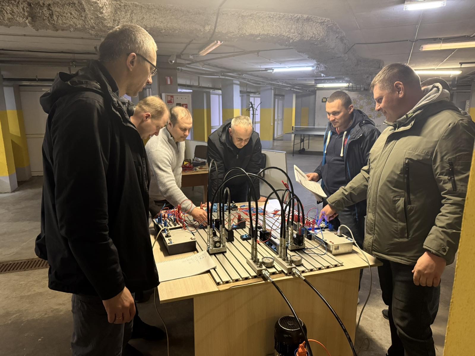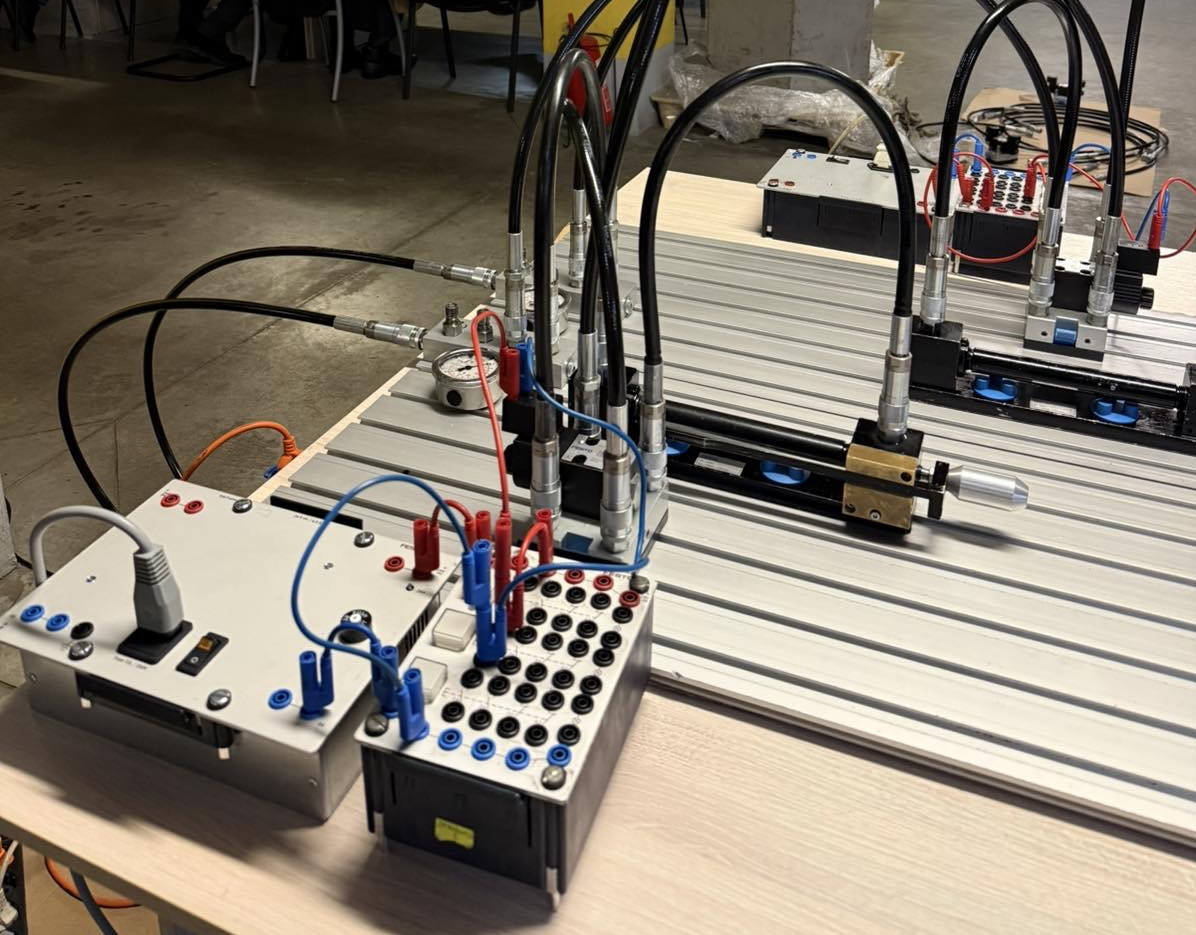 Під час тренінгу науково-педагогічні працівники опанували системи керування промисловим гідроприводом від компанії Festo. Ознайомились зі сферою застосування сучасної гідравлічної апаратури з електричним дискретним керуванням: клапанами, розподільниками, виконавчими пристроями, системами керування моностабільними гідророзподільниками. Фахівці компанії Festo продемонстрували можливості спеціалізованого програмного забезпечення для моделювання роботи гідравлічної апаратури, виявлення та усунення несправностей в електричній частині гідравлічних систем.