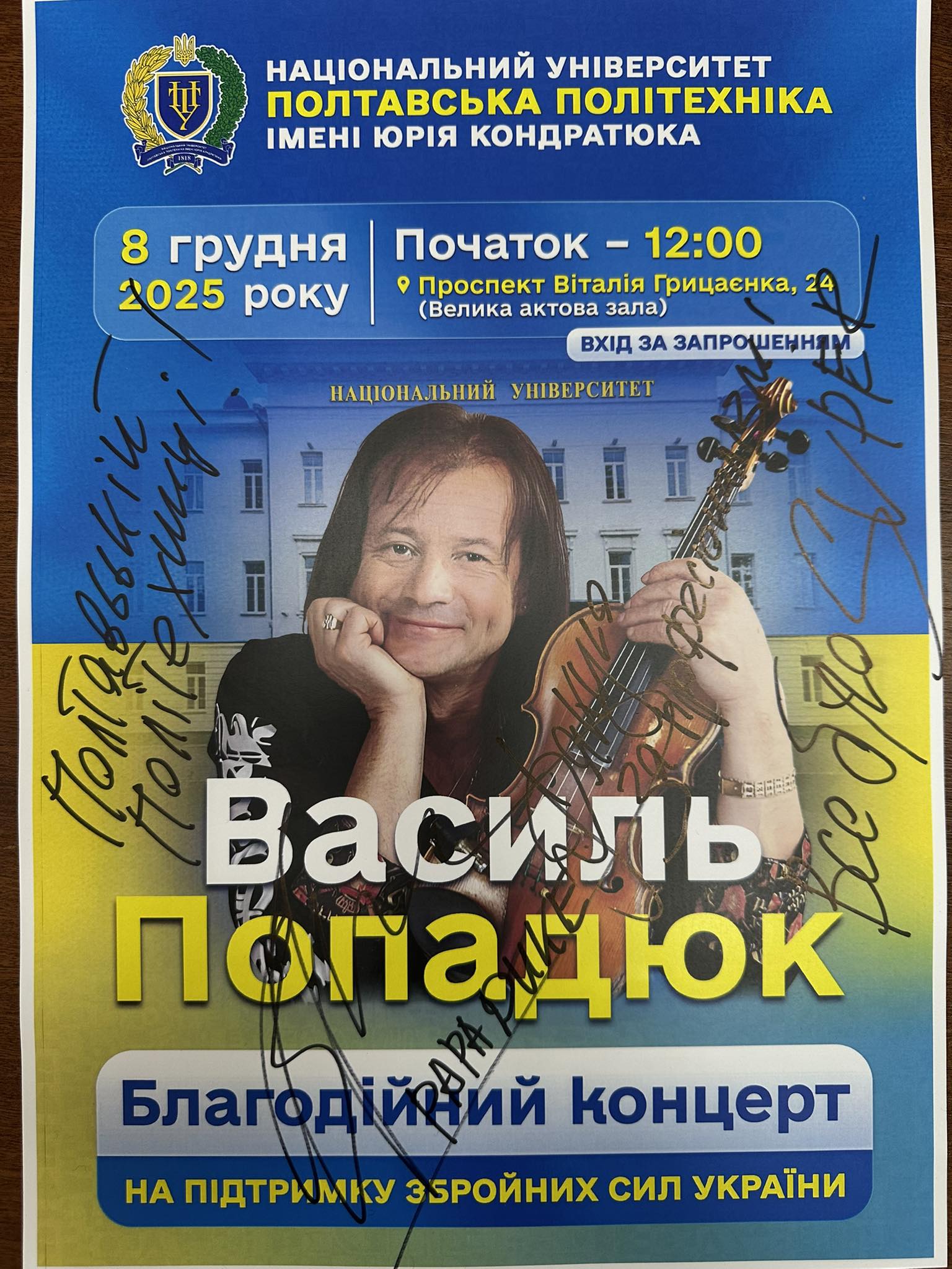 Згідно з усталеною традицією Університету, мистецька подія мала виразну благодійну місію: кожна мелодія, народжена зі струн скрипки «українського Паганіні», перетворилася на символічний і водночас реальний внесок у нашу спільну справу. Усі кошти, зібрані під час концерту, буде спрямовано на підтримку Збройних Сил України — наших Героїв, які щоденно боронять свободу й незалежність держави та виборюють для українців право на життя під мирним небом.