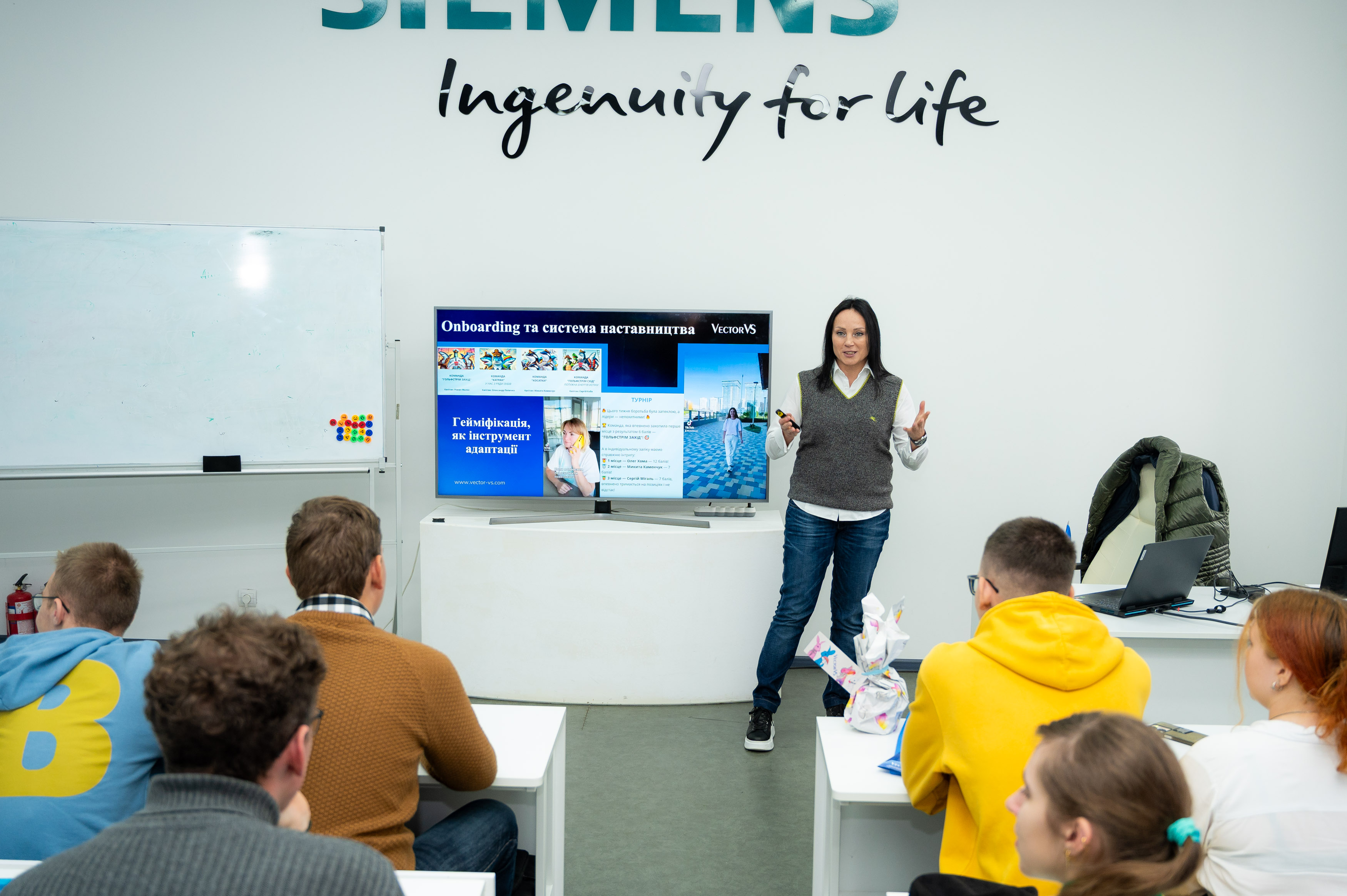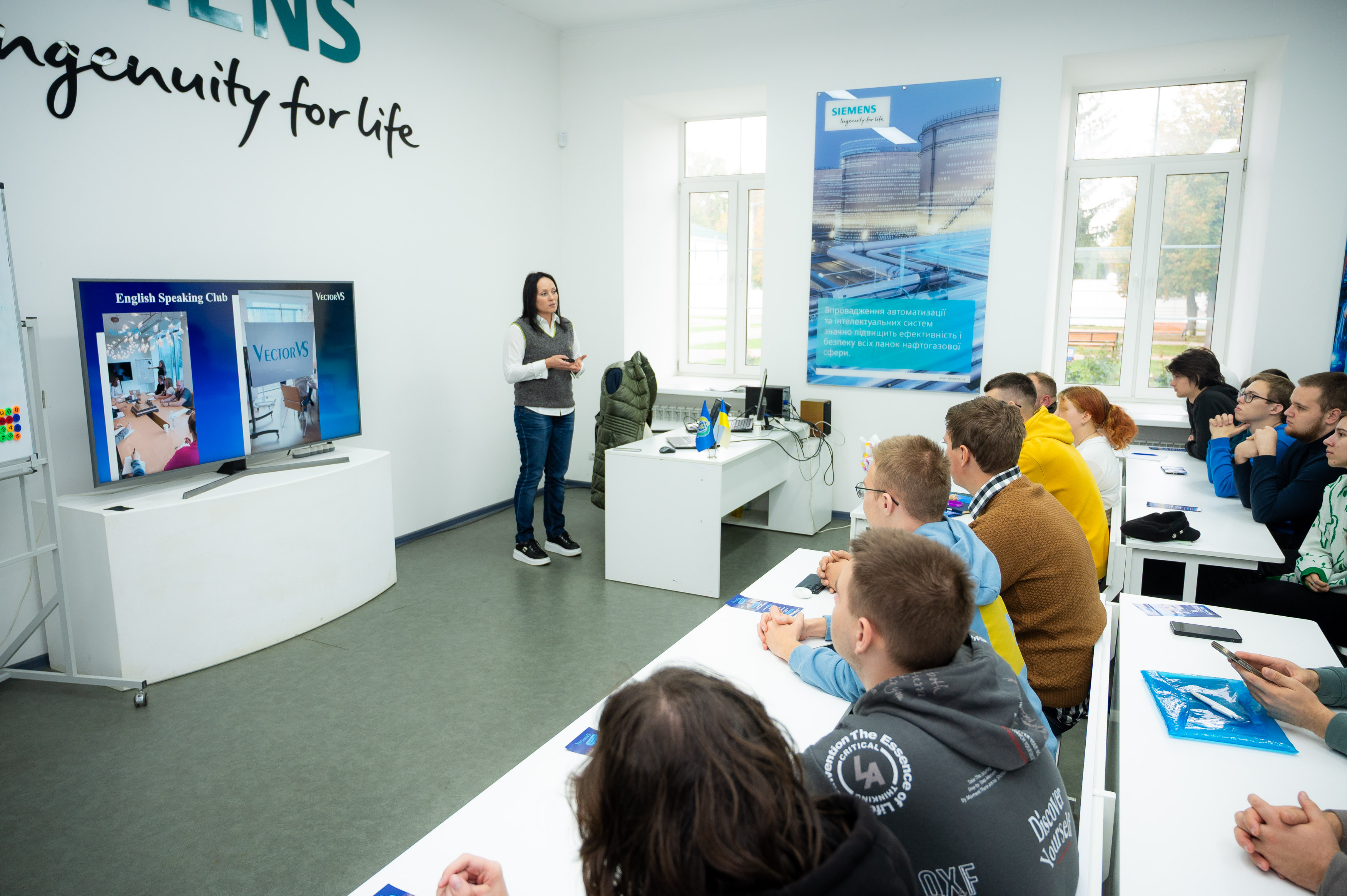 Директорка з управління персоналом компанії Надія Денисенко розповіла студентам про професійні можливості, стажування та кар’єрні перспективи у сфері енергетики й автоматизації.