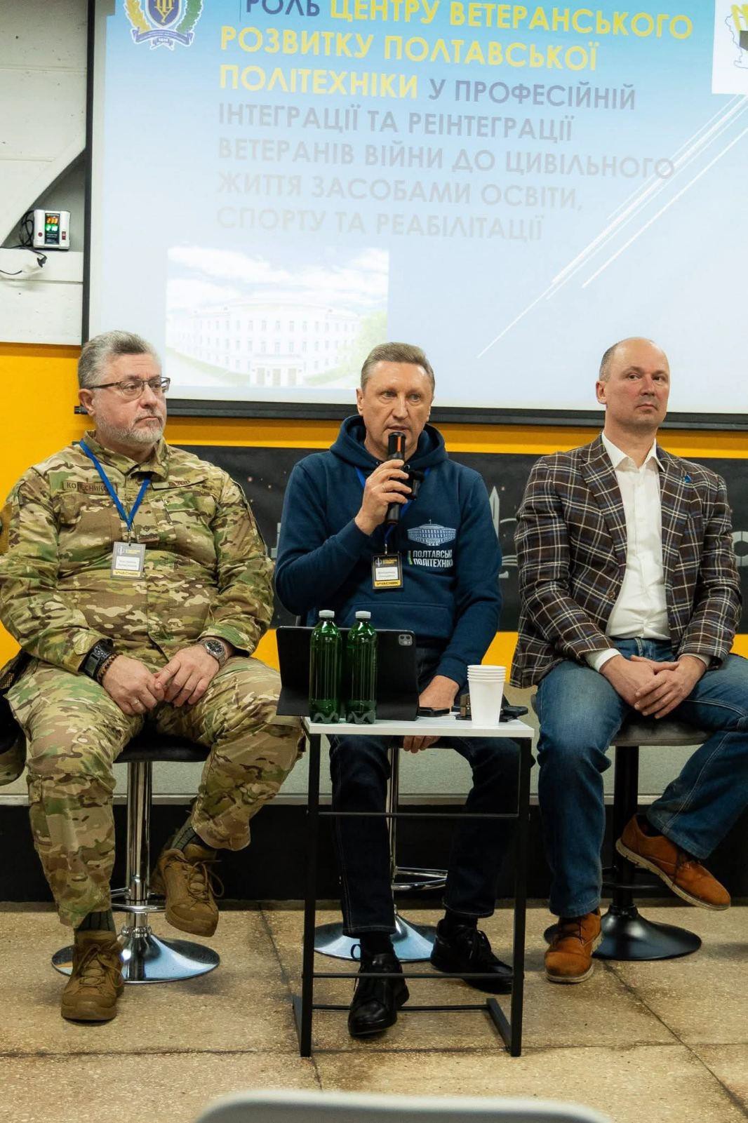 Президент Полтавської політехніки Володимир Онищенко, взявши участь у панельній дискусії, наголосив на вирішальній ролі закладів вищої освіти у вихованні патріотизму й соціальної стійкості молоді. Ключовим у цьому аспекті стало те, що за сприяння Полтавської ОВА та Міністерства у справах ветеранів у жовтні 2023 року в університеті було створено Центр ветеранського розвитку, ключовими завданнями якого стали адаптація ветеранів, перепідготовка й підвищення кваліфікації за спеціальностями, затребуваними на ринку праці. Університет надає можливість захисникам здобути другу освіту, опанувати нові професії, а також створити власний бізнес.