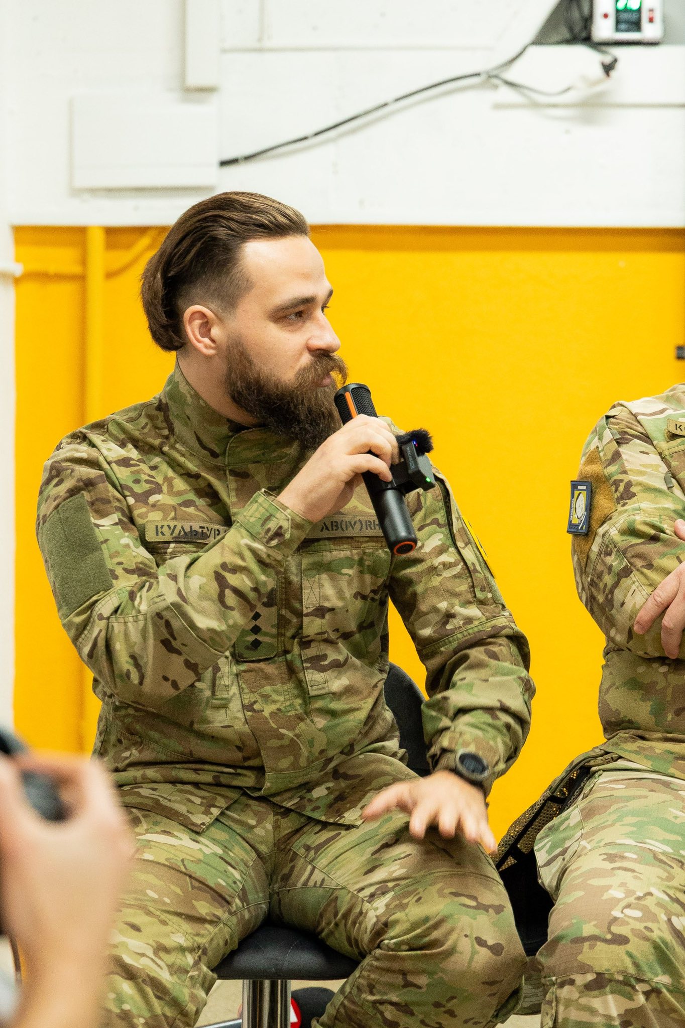 Розпочали захід панельною дискусією «Влада, ветерани, культура: як слово стає зброєю». Спікерами стали: народний депутат України Тарас Тарасенко; заступник начальника Полтавської ОВА Антон Чубенко; заступниця виконавчого директора Українського ветеранського фонду Анастасія Ращенко; представник Міністерства у справах ветеранів Кирило Дороленко; письменники та громадські діячі Василь Шкляр і Сергій Жадан; президент Національного університету «Полтавська політехніка імені Юрія Кондратюка» Володимир Онищенко; офіцер Хорунжої служби 12 БРСПП «Азов» Костянтин Колесников; пресофіцер бригади «Азов» Данііл «Культура» Мірешкін; пресофіцер 427-го окремого полку безпілотних систем «Рарог» Анастасія Ширченко; керівниця відділу соціалізації та реадаптації служби супроводу 12- ої бригади «Азов» НГУ Ольга «Оляна» Вус.