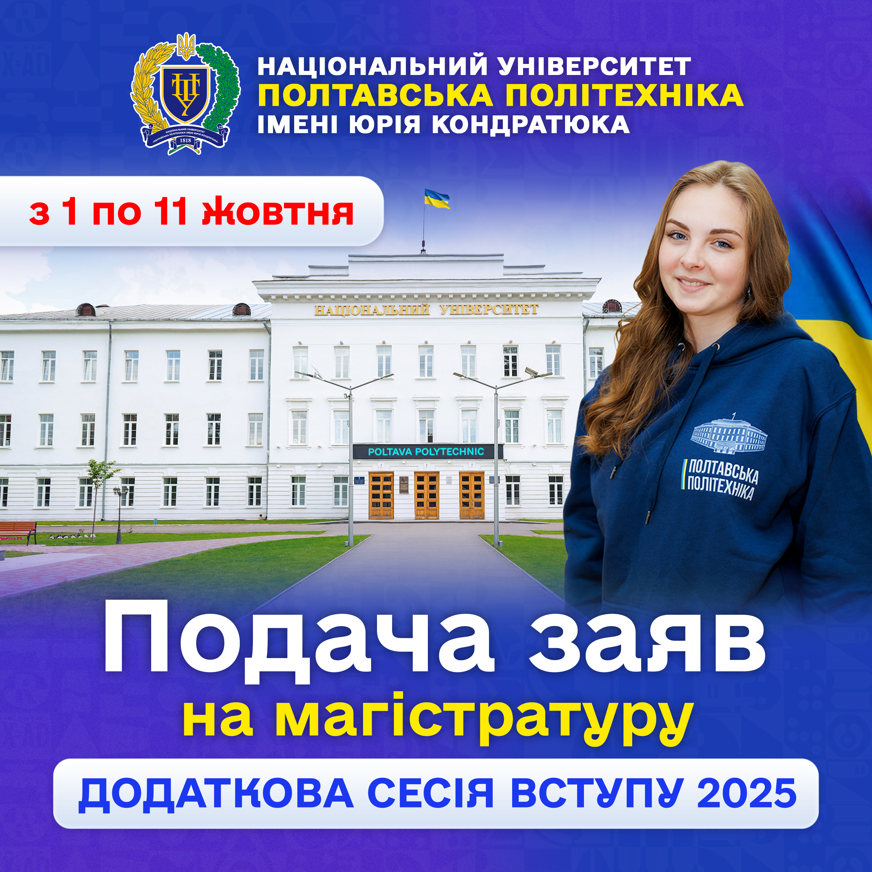 Вступна кампанія-2025 триває. Полтавська політехніка проводить другу додаткову сесію прийому на навчання до магістратури та на бакалаврат.