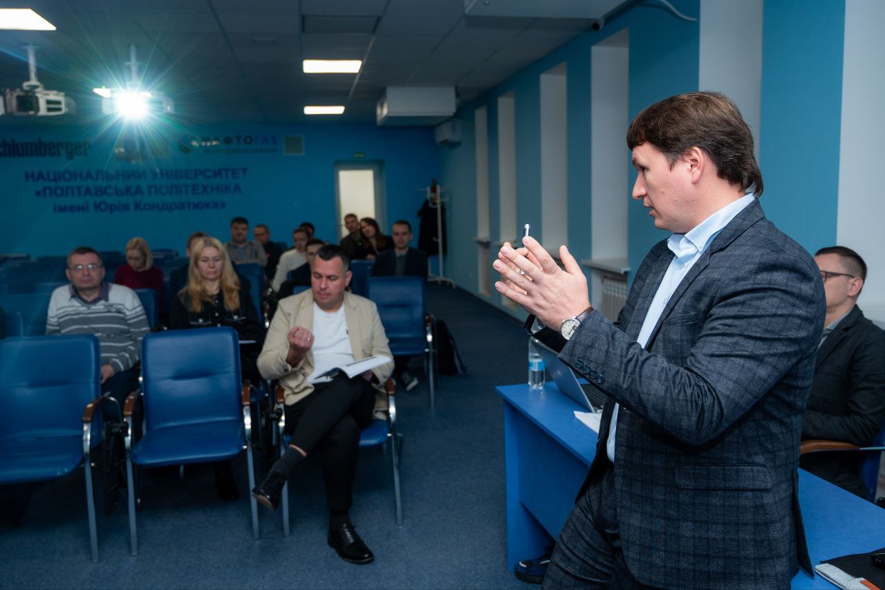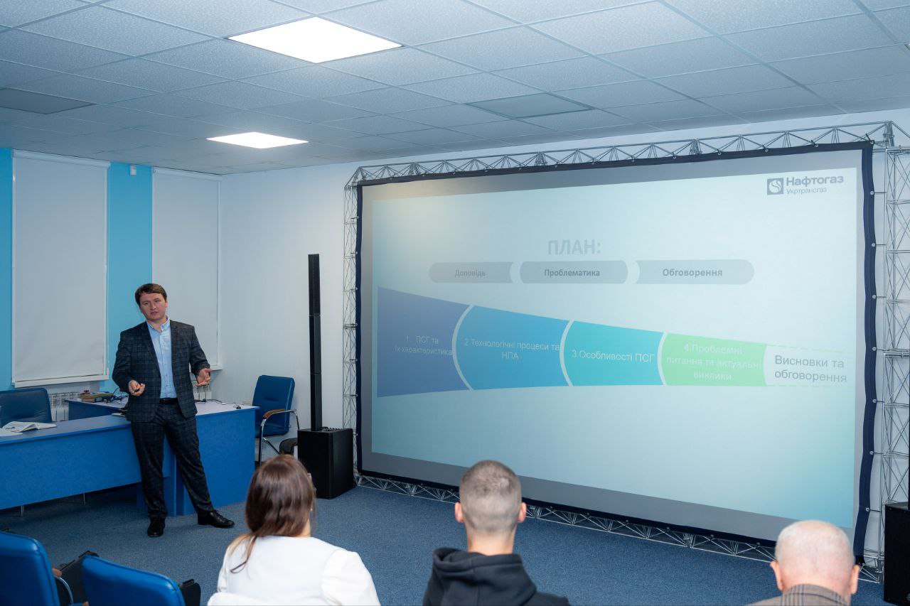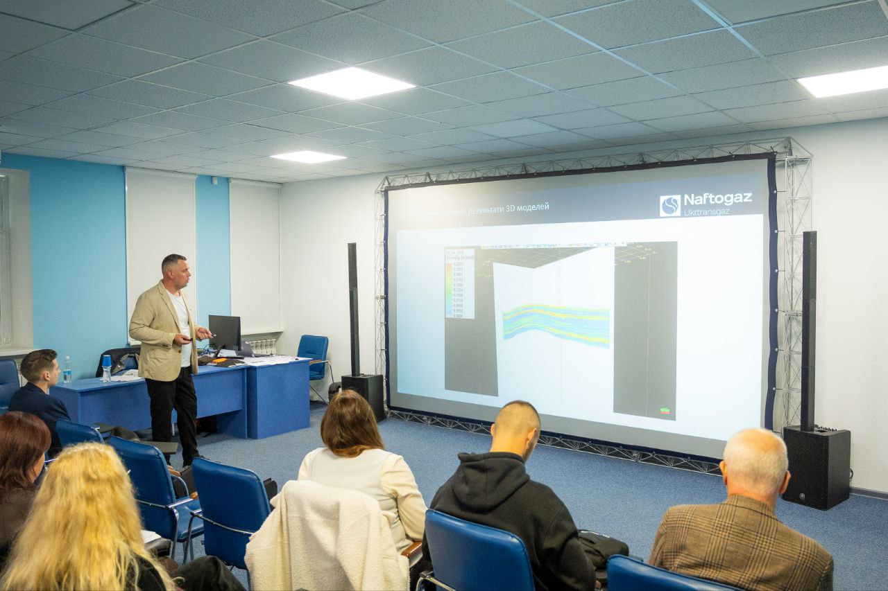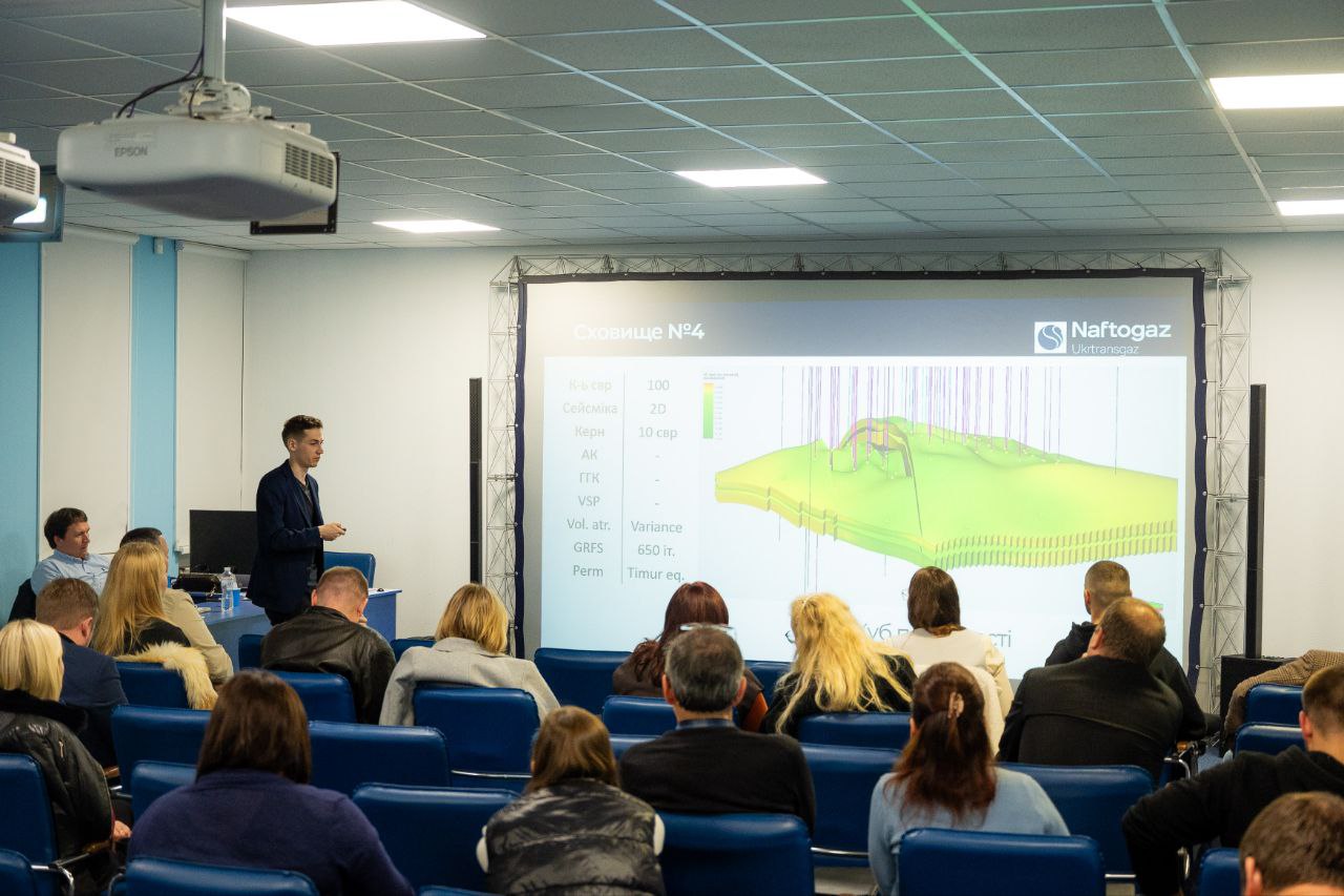 Начальник Департаменту науково-технічного нагляду за експлуатацією та розвитком підземних сховищ газу Науково-дослідного інституту транспорту газу АТ «Укртрансгаз», геолог-практик Сергій Дякончук детально розповів про складну та відповідальну роботу з геофізичними даними свердловин, петрофізичне моделювання та виклики інтерпретації величезних масивів інформації. Окрім того, на лекціях були висвітлені питання проведення сейсморозвідувальних досліджень, зокрема 3D-сейсміки, на найбільших підземних сховищах газу (ПСГ). Також були обговорені актуальні питання сучасного стану та перспектив розвитку ПСГ в Україні.