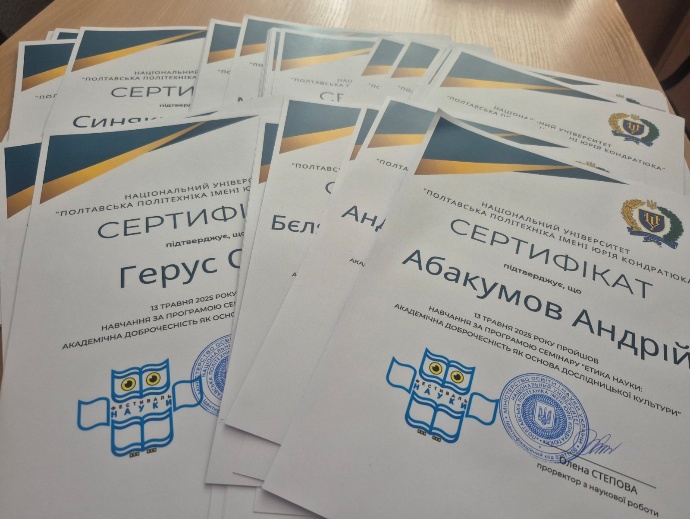 Відповідно до Плану заходів з розвитку академічної доброчесності та етики Національного університету «Полтавська політехніка імені Юрія Кондратюка» протягом 2025 року на базі університету було проведено ряд заходів щодо питань академічної доброчесності, включаючи охорону та захист прав інтелектуальної власності. Зокрема варто виділити проведення круглого столу до міжнародного дня інтелектуальної власності «Світове кафе: захист інтелектуальної власності, проблеми та перспективи», що відбувся за участі представників Українського національного офісу інтелектуальної власності та інновацій (УкрНОІВІ). Також протягом року проводились семінари для здобувачів вищої освіти «Етика науки: академічна доброчесність як основа дослідницької культури» та тренінги для науково-педагогічних працівників «Головні аспекти наукової етики: академічна доброчесність в університеті».