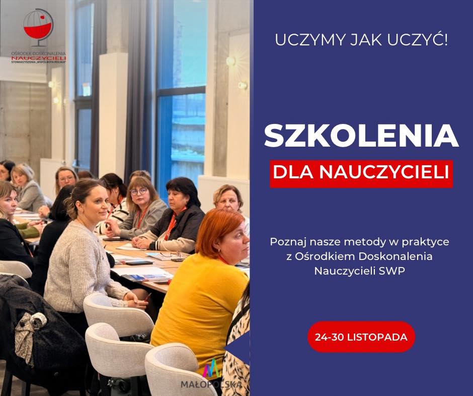 Завідувачка кафедри Алла Болотнікова з 24 по 30 листопада відвідала низку методичних майстер-класів, які організував Ośrodek Doskonalenia Nauczycieli SWP. Цей проєкт був співфінансований за рахунок коштів Малопольського воєводства. Заняття провели відомі автори підручників та посібників з польської мови як іноземної, професори Ягеллонського університету, зокрема Анна Сиретни висвітлила аспекти роботи на заняттях польської мови в різнорівневих групах, Данута Галига представила внутрішньо-мовний переклад як інноваціну практику, натхнення та сучасну методику викладання польської мови, Домініка Іздебська репрезентувала граматика для слов'ян у контрастний спосіб через практичні, надихаючі та вкрай необхідні заняття для польських вчителів, Томаш Мождеж поділився знаннями про нові технології та штучний інтелект у навчанні польської мови, з Маженою Вавжень обговорили сучасні техніки розвитку культурологічної компетентності, а з Домінікою Буцко – розвиток фонологічних компетентностей.