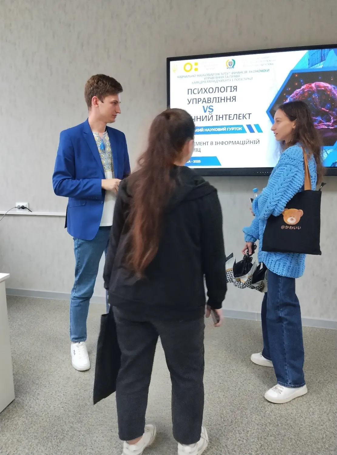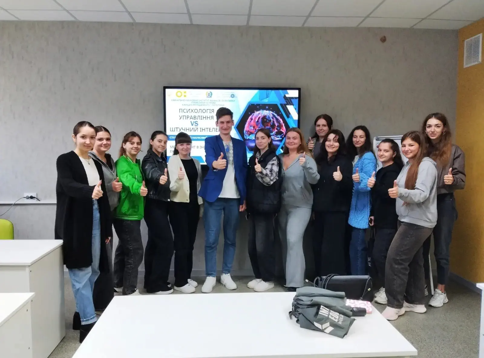 У вересні 2025 року відбулося перше у цьому навчальному році засідання студентського наукового гуртка «Менеджмент в інформаційній економіці» під керівництвом старшого викладача кафедри менеджменту і логістики Олександра КУДІНОВА. Студенти першого та другого курсів спеціальності «Менеджмент» обговорювали надзвичайно актуальну тему «Психологія управління VS Штучний інтелект» Обговорювали не лише те, які інструменти штучного інтелекту вже допомагають бізнесу у роботі з клієнтами – від чат-ботів і персоналізованих рекомендацій до автоматизації підтримки й аналітики продажів, – а й те, як ці технології змінюють споживчу поведінку та очікування клієнтів. Говорили про реальні кейси використання ШІ в маркетингу, управлінні сервісом і навіть у HR. Окрему увагу приділили темі безпеки – новим шахрайським схемам із використанням ШІ.