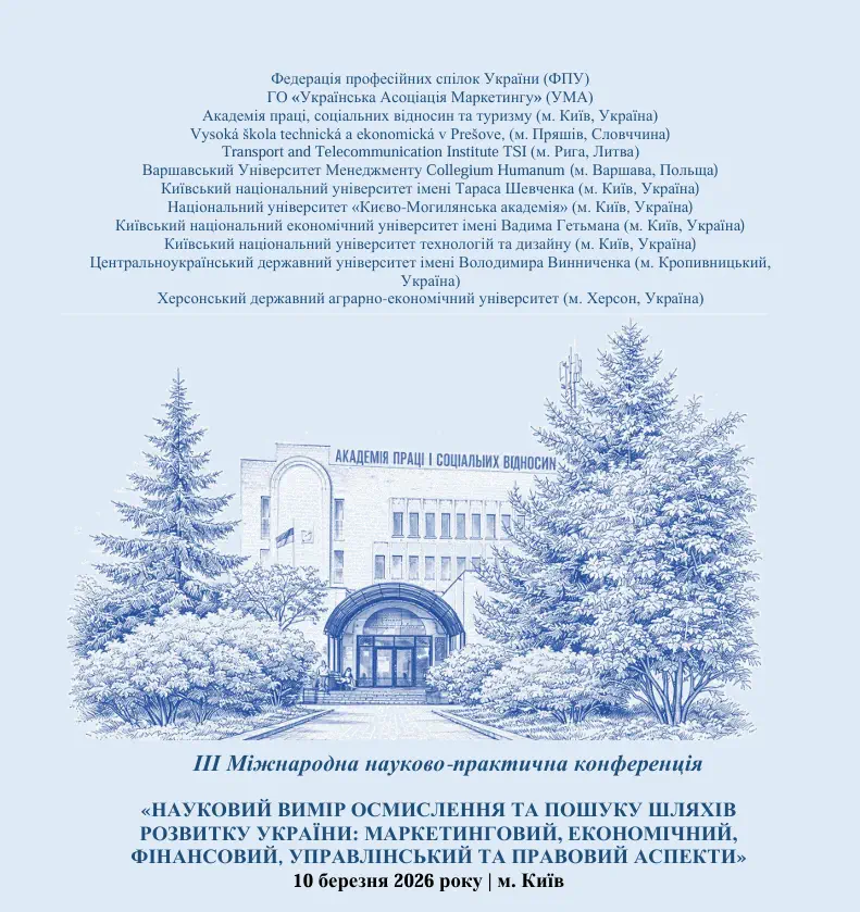 10 березня 2026 року викладачі та здобувачі вищої освіти кафедри менеджменту і логістики Навчально-наукового інституту фінансів, економіки, управління та права Національний університет «Полтавська політехніка імені Юрія Кондратюка» взяли участь у ІІІ Міжнародній науково‑практичній конференції «Науковий вимір осмислення та пошуку шляхів розвитку України: маркетинговий, економічний, фінансовий, управлінський та правовий аспекти», що відбулася 10 березня 2026 року у м. Київ.