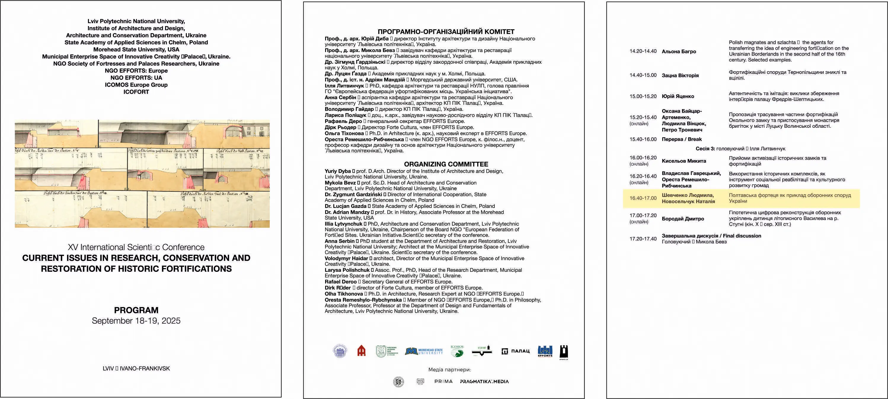 Викладачки кафедри архітектури будівель та дизайну Людмила ШЕВЧЕНКО та Наталія НОВОСЕЛЬЧУК взяли участь у XV щорічній Міжнародній науковій конференції “CURRENT ISSUES IN RESEARCH, CONSERVATION AND RESTORATION OF HISTORIC FORTIFICATIONS” («Проблеми дослідження, збереження та реставрації історичних фортифікацій»), яка проходила 18 вересня 2025 р. у м. Львів та 19 вересня 2025 р. у м. Івано-Франківськ (Україна). Організаторами конференції виступили кафедра архітектури та реставрації Інституту Архітектури Національного університету «Львівська політехніка» (Україна), Державна Вища Професійна Школа в м. Холм (Польща), Морегедський державний університет (США), КП Простір Інноваційних Креацій «Палац» (Україна), ГО Товариство прихильників фортець і палаців (Україна), ГО EFFORTS: Europe, ГО EFFORTS: UA ICOMOS, Europe Group та ICOFORT.
