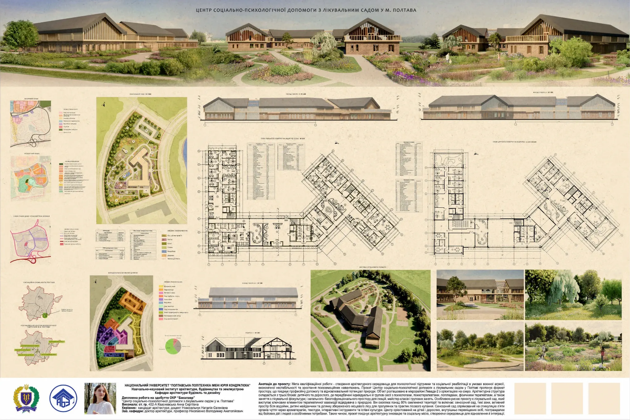 - Анна КВАСНЕВСЬКА за кваліфікаційну роботу бакалавра на тему «Центр соціально-психологічної допомоги з лікувальним садом у м. Полтава» (науковий керівник – к. арх., доц. Наталія НОВОСЕЛЬЧУК) – номінація «Громадські будівлі (реабілітаційні та медичні)»;