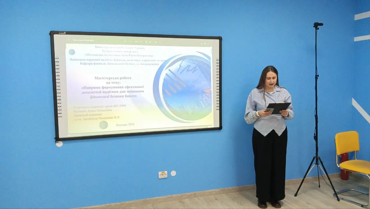 21–22 січня 2026 року на кафедрі фінансів, банківського бізнесу та оподаткування Національного університету «Полтавська політехніка імені Юрія Кондратюка» відбулися захисти магістерських робіт здобувачів другого (магістерського) рівня вищої освіти за спеціальністю 072 «Фінанси, банківська справа, страхування та фондовий ринок» за освітньо-професійними програмами «Фінанси, банківська справа та страхування» та «Управління фінансово-економічною безпекою».
