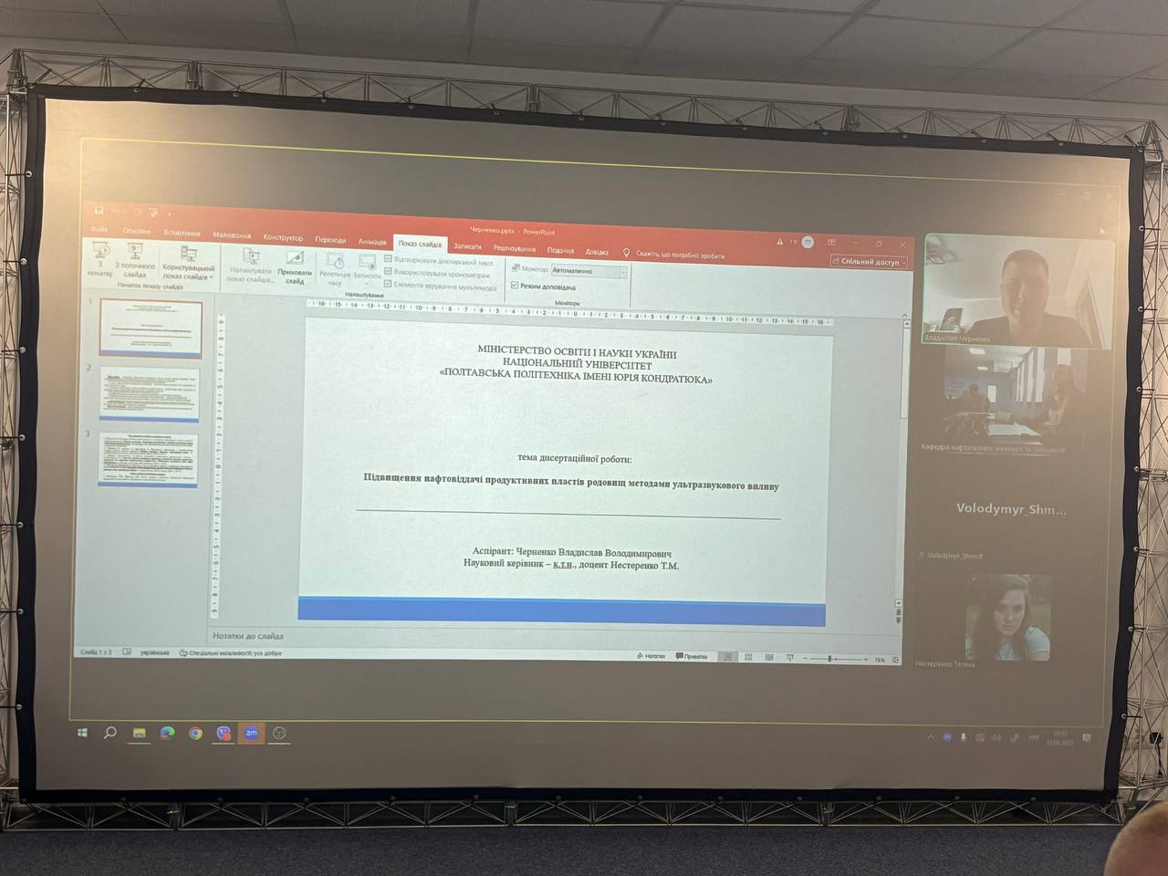 22 вересня 2025 року на кафедрі нафтогазової інженерії та технологій Національного університету «Полтавська політехніка імені Юрія Кондратюка» відбулася щорічна атестація аспірантів. Захід проходив у форматі публічного звіту здобувачів наукового ступеня доктора філософії про виконання індивідуальних планів наукової роботи та досягнення за минулий навчальний рік.